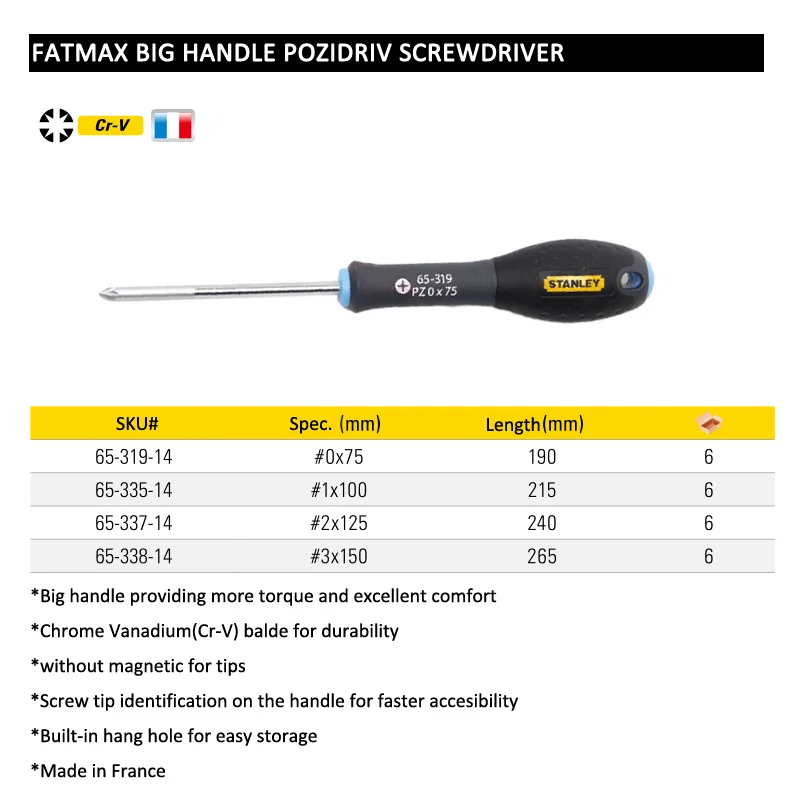 Отвертка Fatmax pozidriv, 1 шт., пожизненная гарантия, отвертка, отвертка pozi #0 #1 #2 #3 pozidriver без магнита Cr-v steel