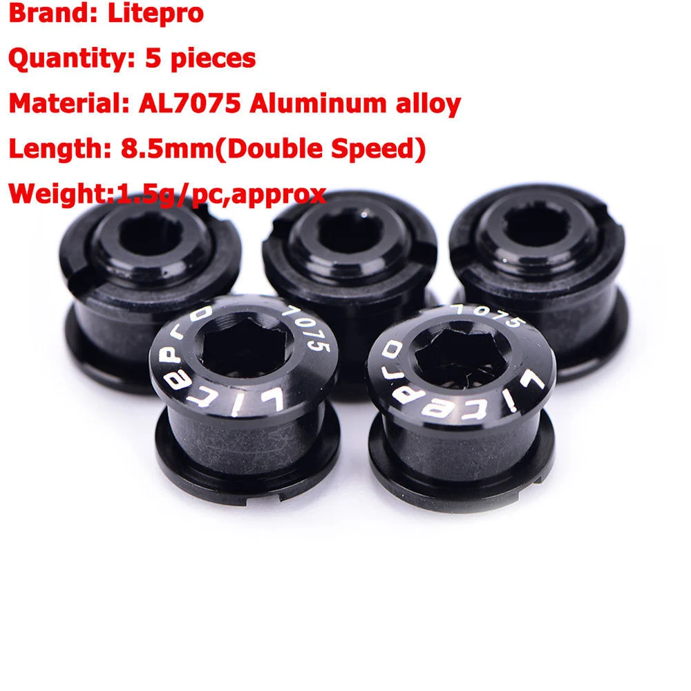 Особенности: Бренд: Litepro Материал: изготовлен из алюминиевого сплава 7075, очень легкий и прочный Вес: 1,7 г (1 шт.) Комплектация: 1/4/5 x болт для цепного кольца