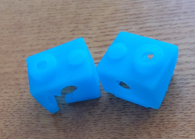 На блок Lerdge не подходит. Странно, но я больше не видел отдельных носков на именно хотенд lerge блок от официального магазина. Только вместе с хотендом. Пришлось прорезать пару отверстий самостоятельно, чтобы натянуть носок.