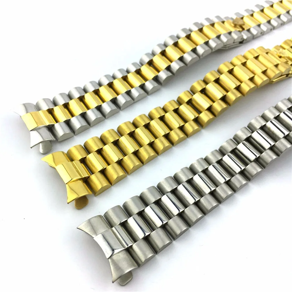 Ремешок для наручных часов, браслет из нержавеющей стали с изогнутым концом, среднего и золотого цвета, 20 мм