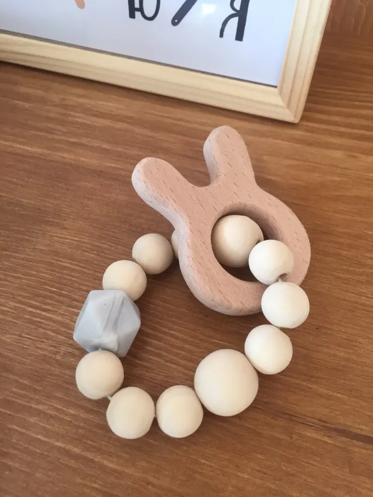 Деревянный Детский браслет в форме животного, ювелирные изделия для прорезывания зубов, Детские Силиконовые Бусины, детская коляска-погремушка, аксессуары, игрушки