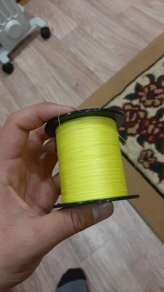 Доставка за 27 дней. Не соответствует описанию - заявлено продавцом 500 метров, а фактически 424 метра!!!!!!! На 315 и 415 метрах дефекты (смотреть фото). Очень сильно отдаёт краску(смотреть фото ролика катушки) - производил намотку шнура сухим способом. Тест на разрыв на узлах 4,5-4,7 кг, на безузловках 6 кг. Продукцию не рекомендую!!!