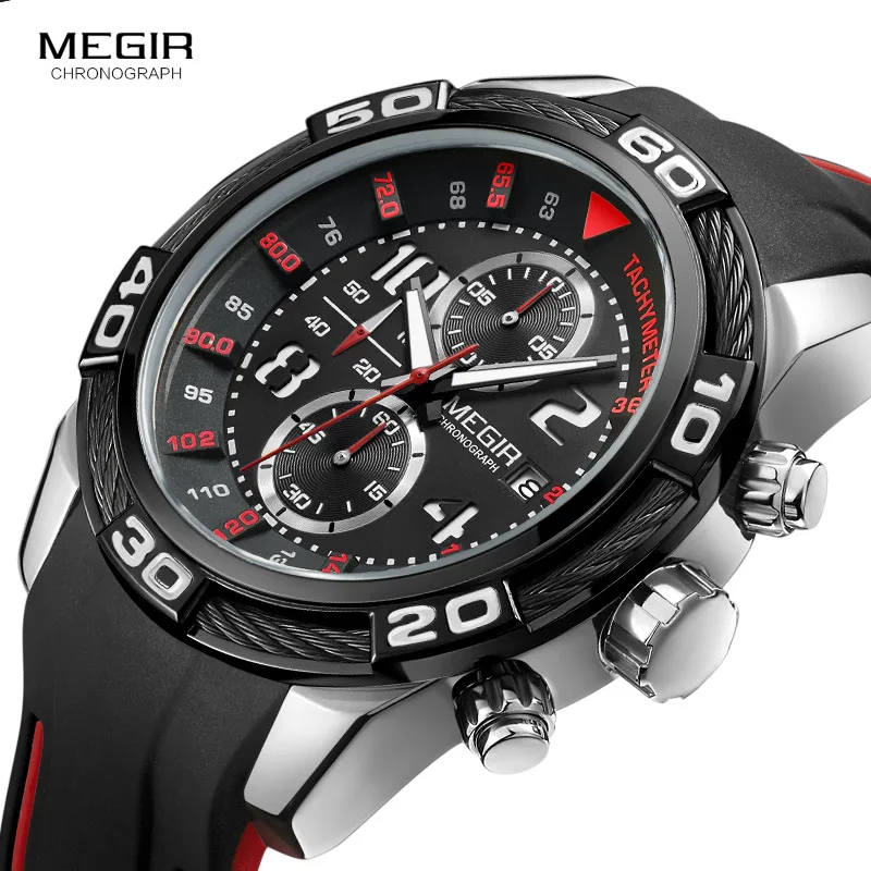 Мужские Спортивные кварцевые наручные часы с хронографом, силиконовый черный армейский Военный секундомер, мужские часы Relogios Masculino Red 2045G