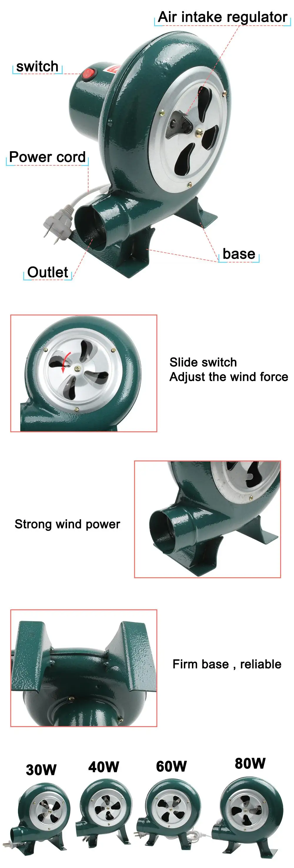 Бытовой центробежный воздуходув, 220-240 В, воздуходувка для барбекю, 30-80 Вт