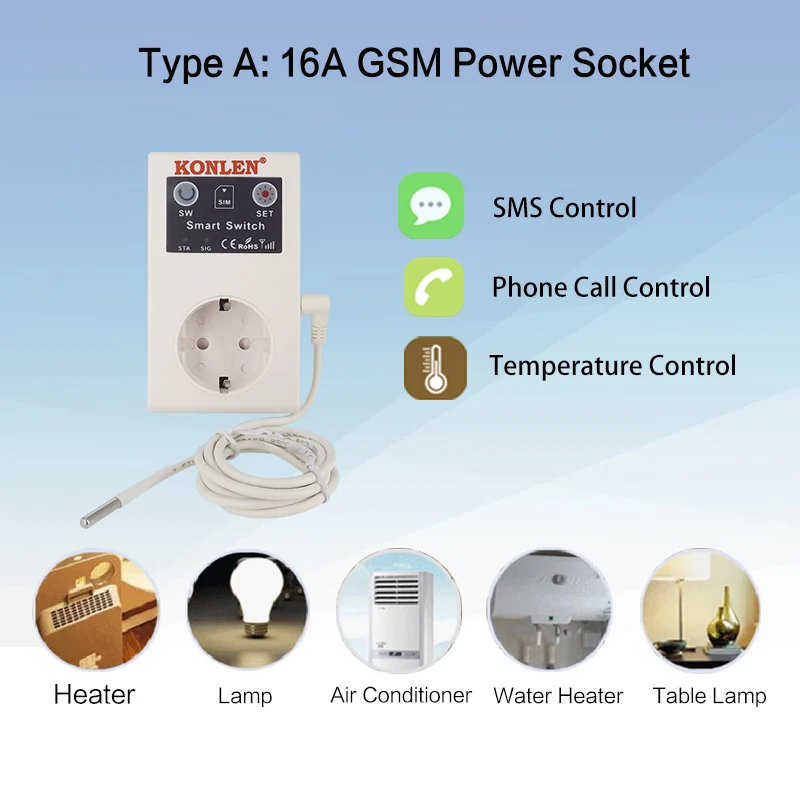Переключатель для умного дома, Релейный контроллер, 16A, GSM, удаленный доступ, датчик температуры, управление по SMS,приложение для открывания ворот гаража