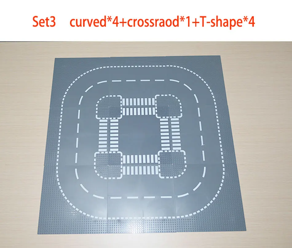 Опорная плита для городской дороги, улицы, прямое пересечение, Т-образное соединение, строительные блоки 7280 7281, совместимы с базовой пластиной Leduo City
