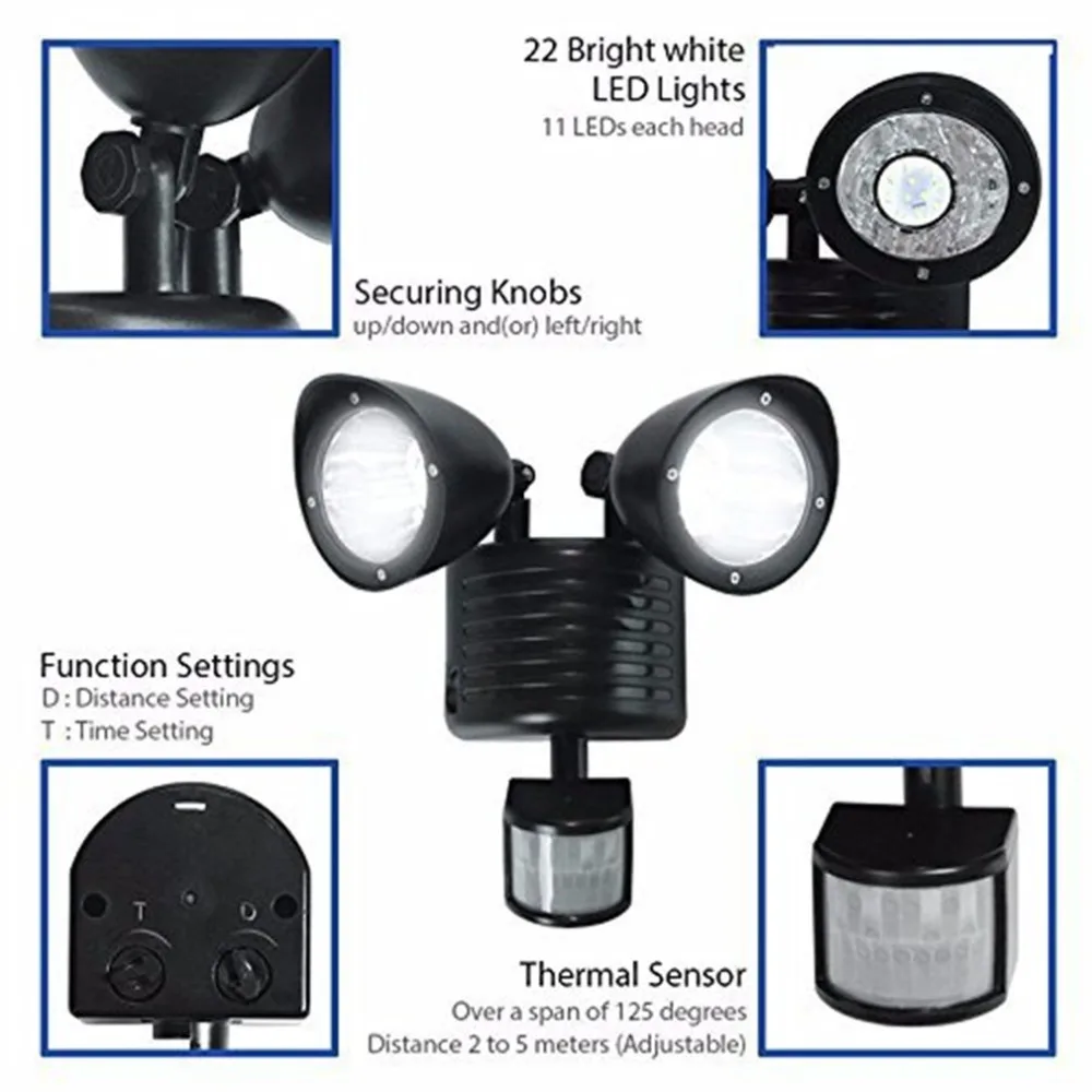 22LED двойной детектор безопасности Солнечный Точечный светильник датчик движения прожектор светильник Настенный светильник на открытом воздухе для сада пейзаж