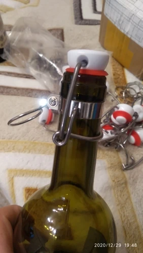 Он действительно отлично работает со стандартными винными бутылками, как на картинке (у бутылки должна быть более плотная часть сверху, и эта откидная крышка идет под ним). И это тоже высокое качество. Верхнее кольцо выглядит как силикон. Я очень доволен. Но цена хотя... :-)