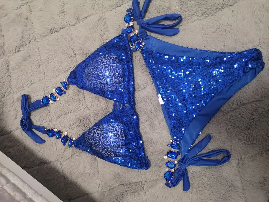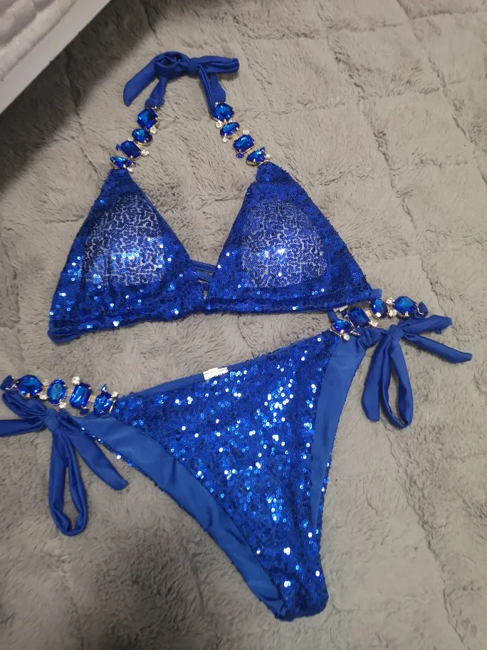 Сексуальный женский комплект бикини с блестками купальники со стразами, золотистый, зеленый, синий, монокини, купальный костюм пуш-ап, бразильский купальник