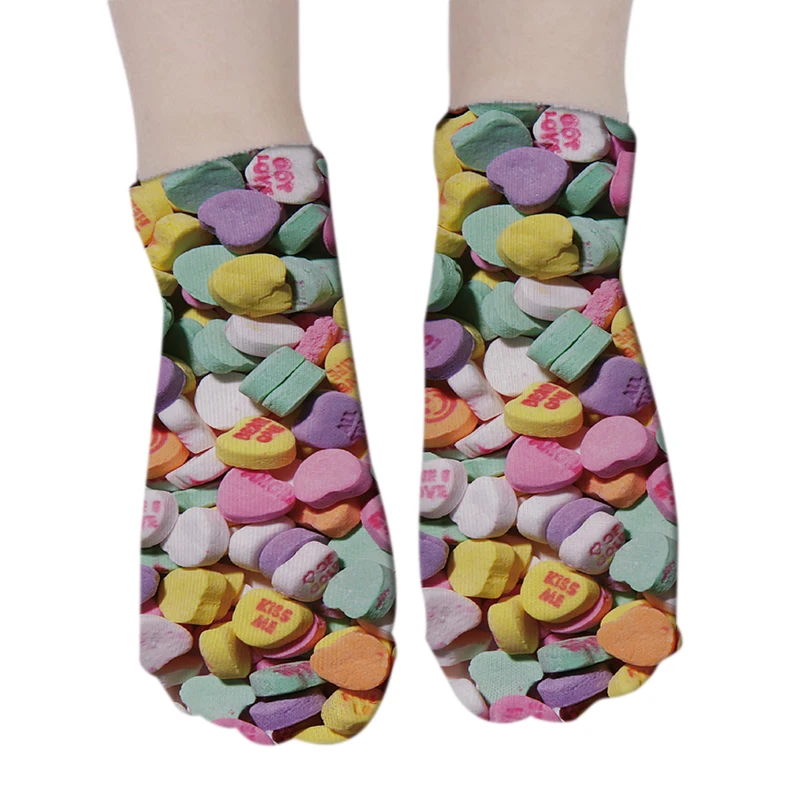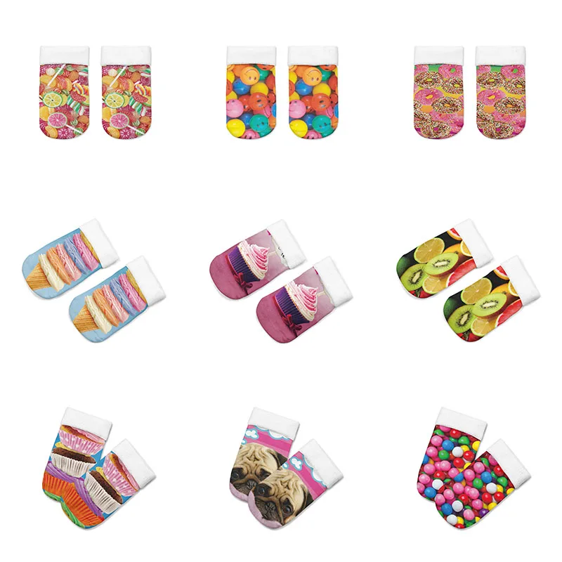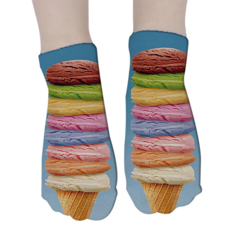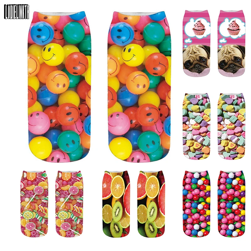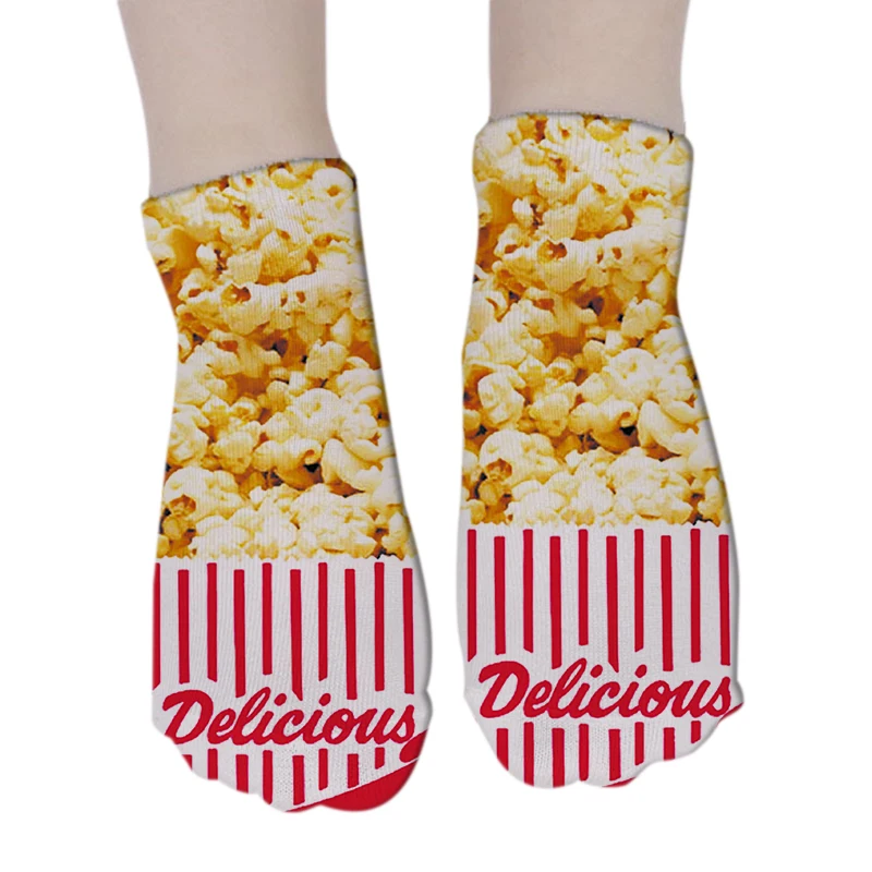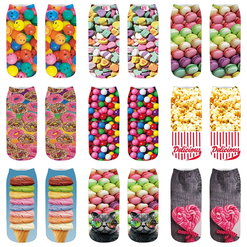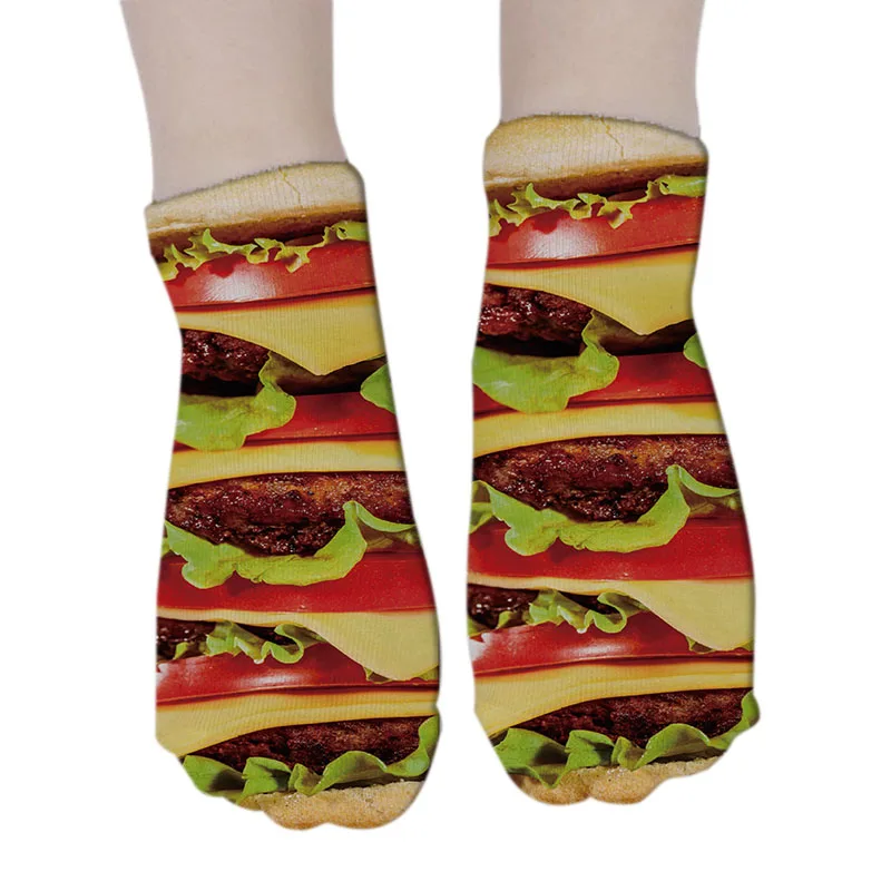 Хлопковые носки с 3D принтом еды, веселые короткие носки с принтом гамбургеров, картошки, фруктов, леденцов в стиле Харадзюку для женщин