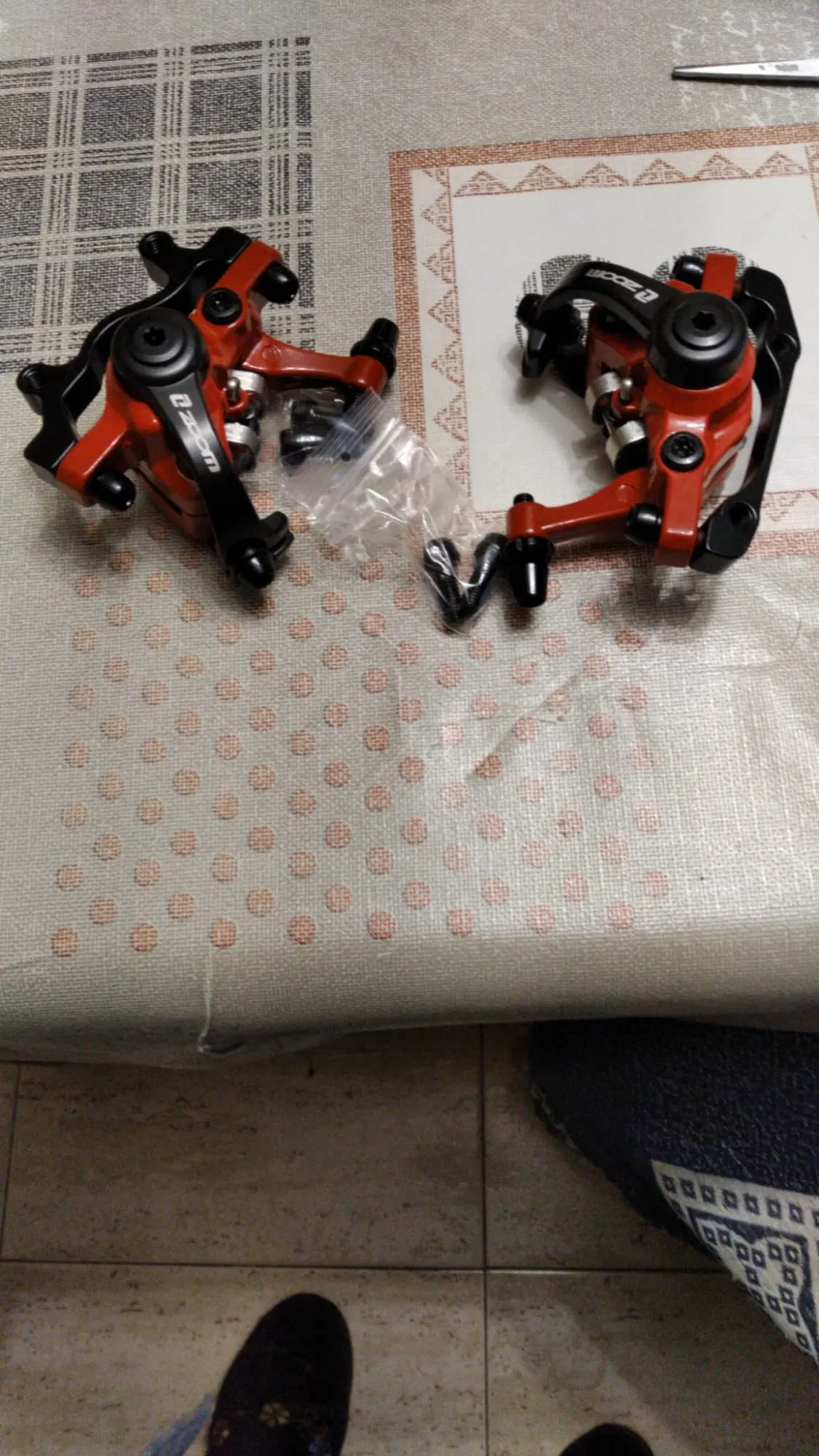 Продавцом доволен на все 100% Заказ был отправлен быстро, упакован ОЧЕНЬ надёжно в два слоя различной защиты, за это отдельное спасибо. Пришло за 3 недели и отслеживалось. При расспаковки оказалось, что продавец прислал только один тормоз из комплекта. Очень важно записывать на видео распаковку! Я сразу же написал продавцу и ответ пришёл на следующий день, я отправил доказательства и он выслал мне не хватающую часть заказа и всё это за 2 дня, респект за скорость. Новая посылка пришла за 2 недели с отслеживанием. Сервисом магазина я очень доволен, быстро, чётко и без насилования мозга. По калипера проблем нет, есть мелкие недочёты колодкам. Одна из пластин была с краю подпилена на скос и не очень ровный держатель колодок, но это мелочь и правится за пару секунд. Пока опробовать не могу, жду остальных комплектующих для сборки, позже дополню отзыв если выявлю недостатки.