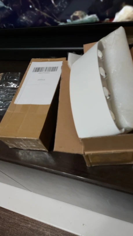 Товар пришёл в 2 этапа, один из светильников получила через 2 недели, всё в порядке. Остальные 4 шт пришли в повреждённой, разорванной упаковке, но это больше вопрос к транспортной компании. На одном светильнике неровное покрытие краски, есть разводы. Поэтому поставила 4