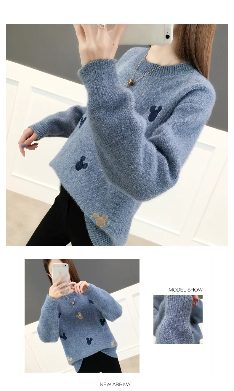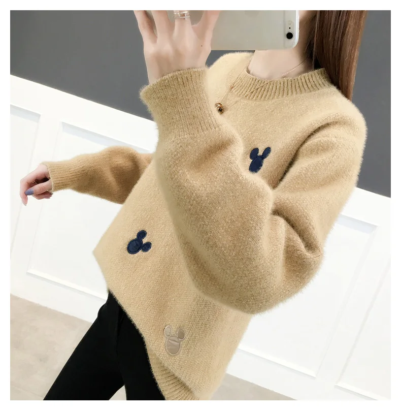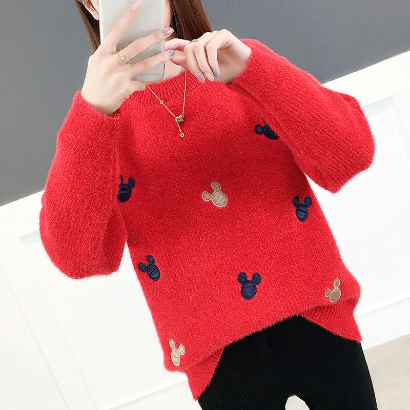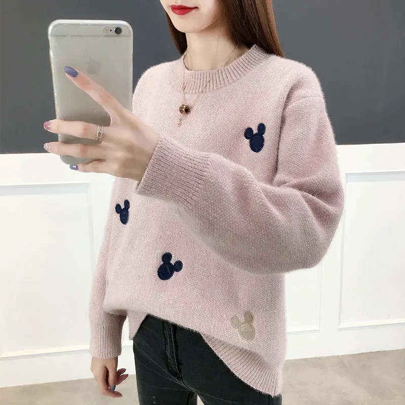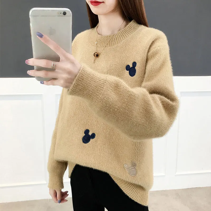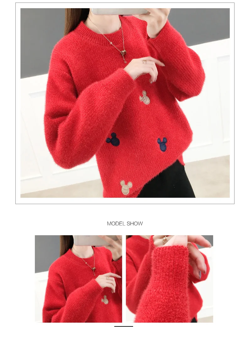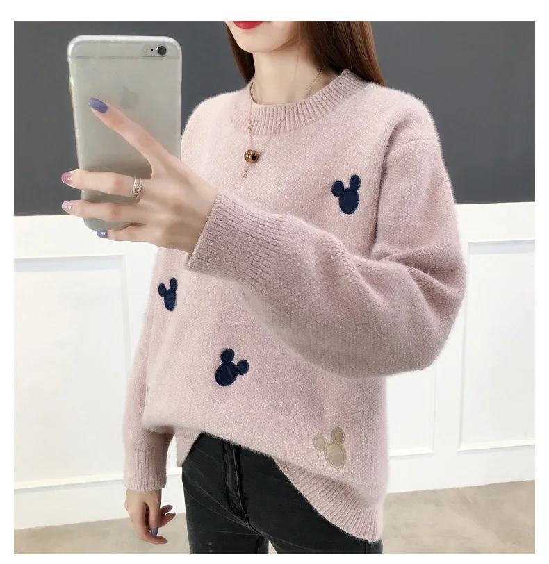 Женский вязаный пуловер, свитер, новинка 2021, осенне-зимняя одежда, теплая вязаная одежда с длинными рукавами из искусственной норки и бархата, топы, джемпер для женщин