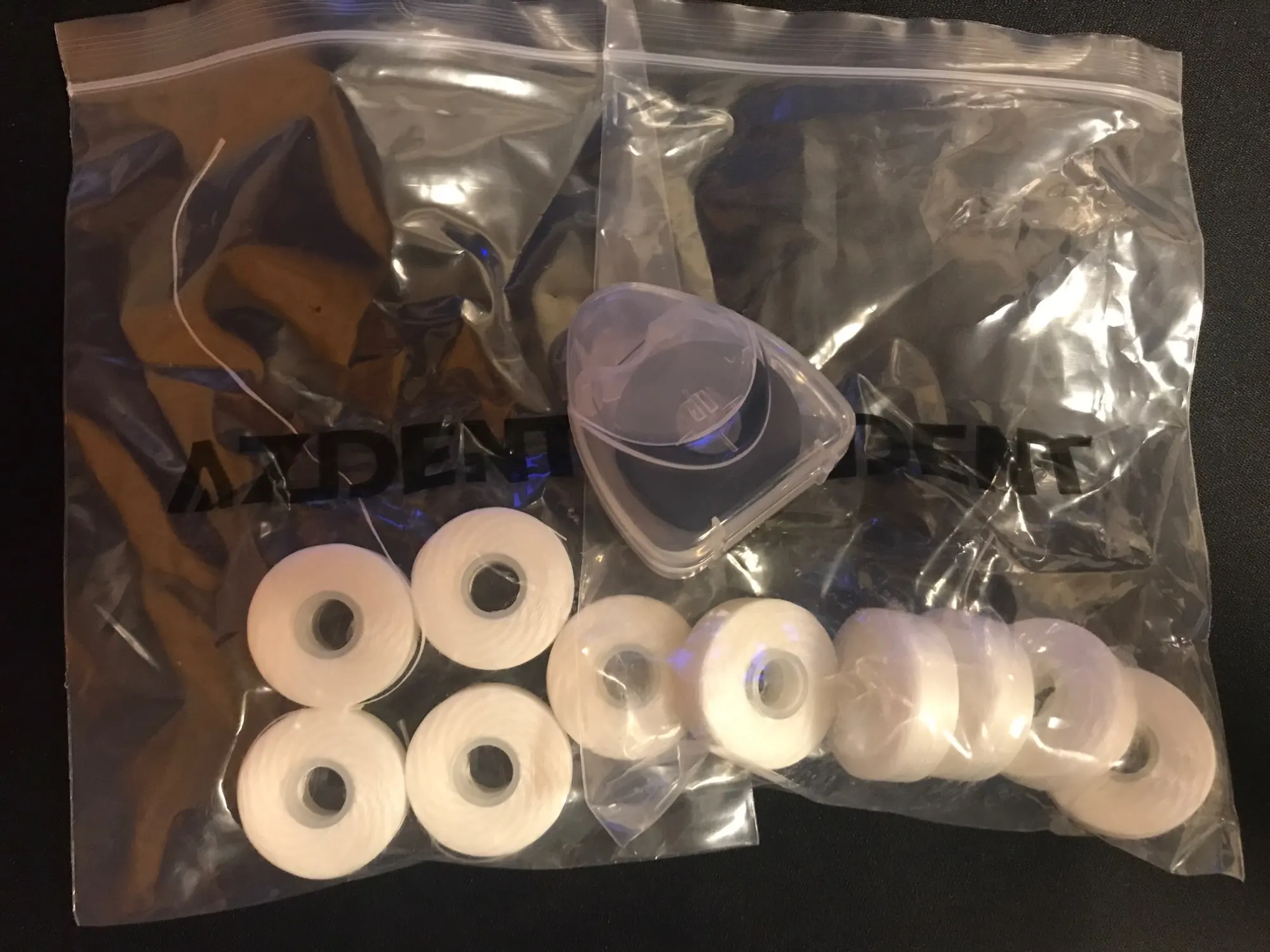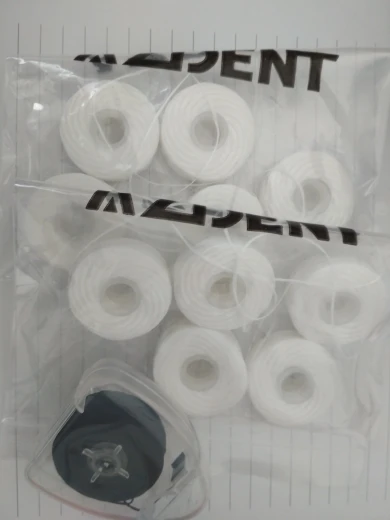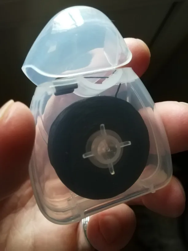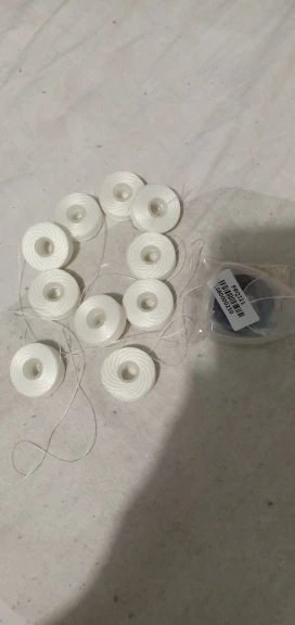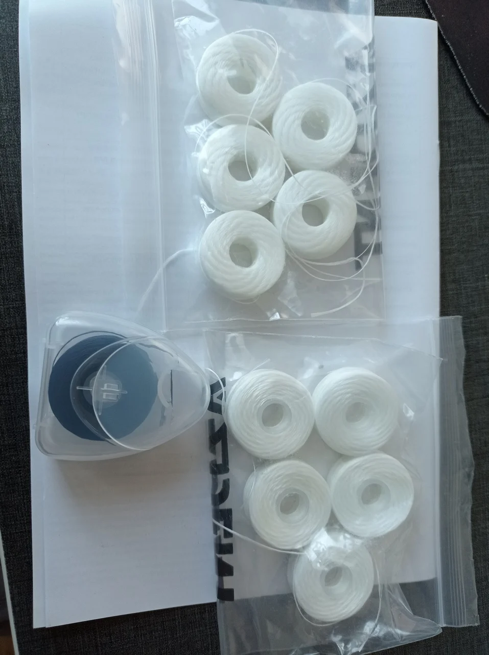 Нитка отличная, 10 сменных рулонов+контейнер с чёрной ниткой.