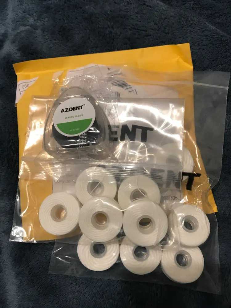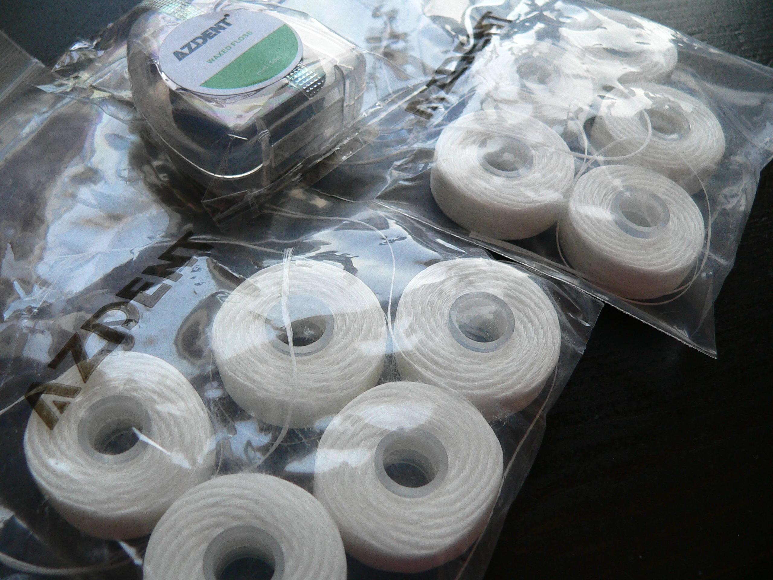 Заказ сделала в последних числах декабря, через 4-5 дней продавец отправил товар. Заказ пришел 12 января. В 2 пакетика были расфасованы 11 мотков зубной нити: 10 белых и один черный в катушке. Белые я, честно говоря, забыла сфоткать, но черные всегда вожу с собой в поездки и поэтому сделала фото. Нить обладает очень сильным мятным вкусом и запахом, пользоваться ей было приятнее, чем нитью oral-b из магнит-косметик