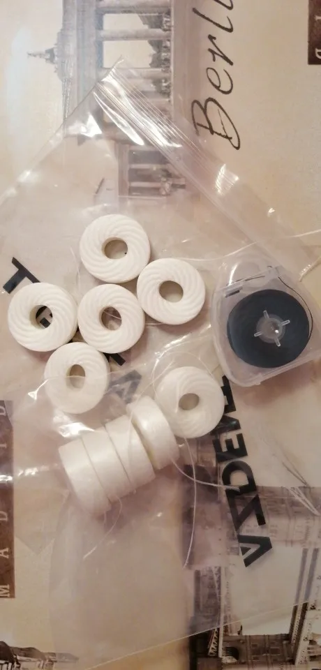 Швидка доставка, з продавцем не спілкувалась. Магазин і продавця рекомендую. Упаковка в пупирку, 2 пакети по 5 рулонів ниток і котушка чорних ниток в коробочці, все, як описано. Спробую нитки в роботі - доповню відгук.