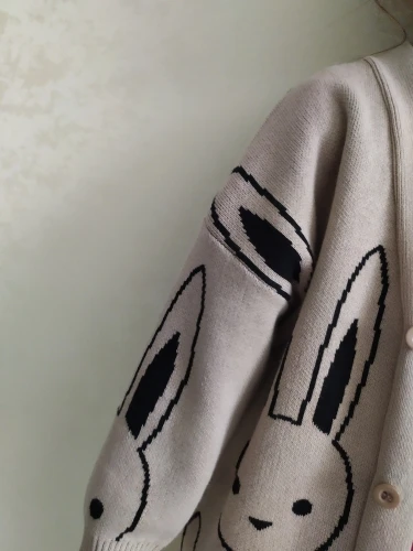 Детский трикотажный свитер, на осеньзиму, с мультяшным кроликом