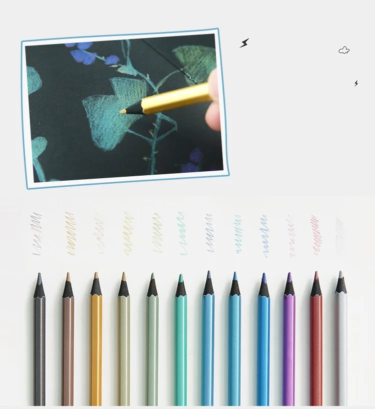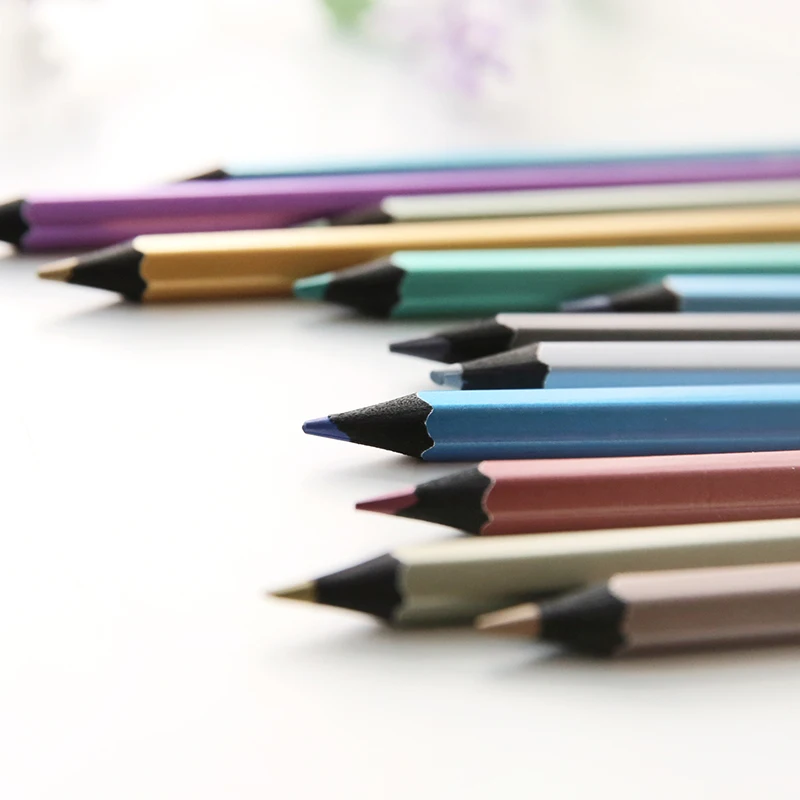 Набор металлических цветных карандашей, 12 цветов, черные деревянные карандаши, фотография, школьные принадлежности, F6495