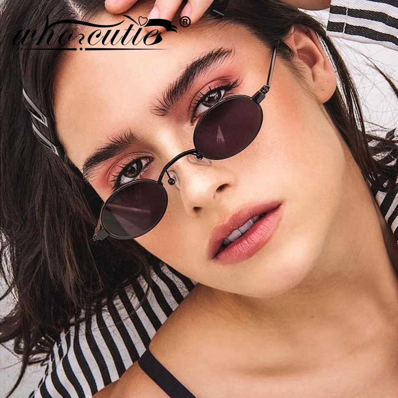 WHO CUTIE 2018, тонкие Овальные Солнцезащитные очки для мужчин и женщин, мужские брендовые дизайнерские очки с золотой оправой, красные линзы, 90S, маленькие солнцезащитные очки, винтажные Ретро оттенки 601B