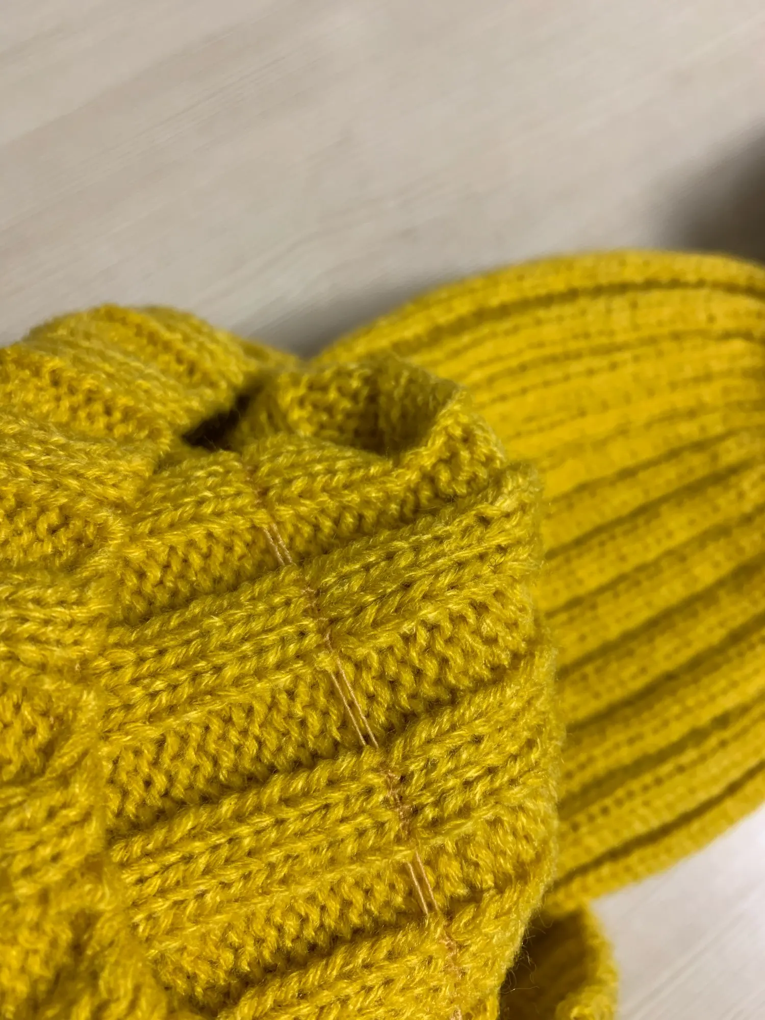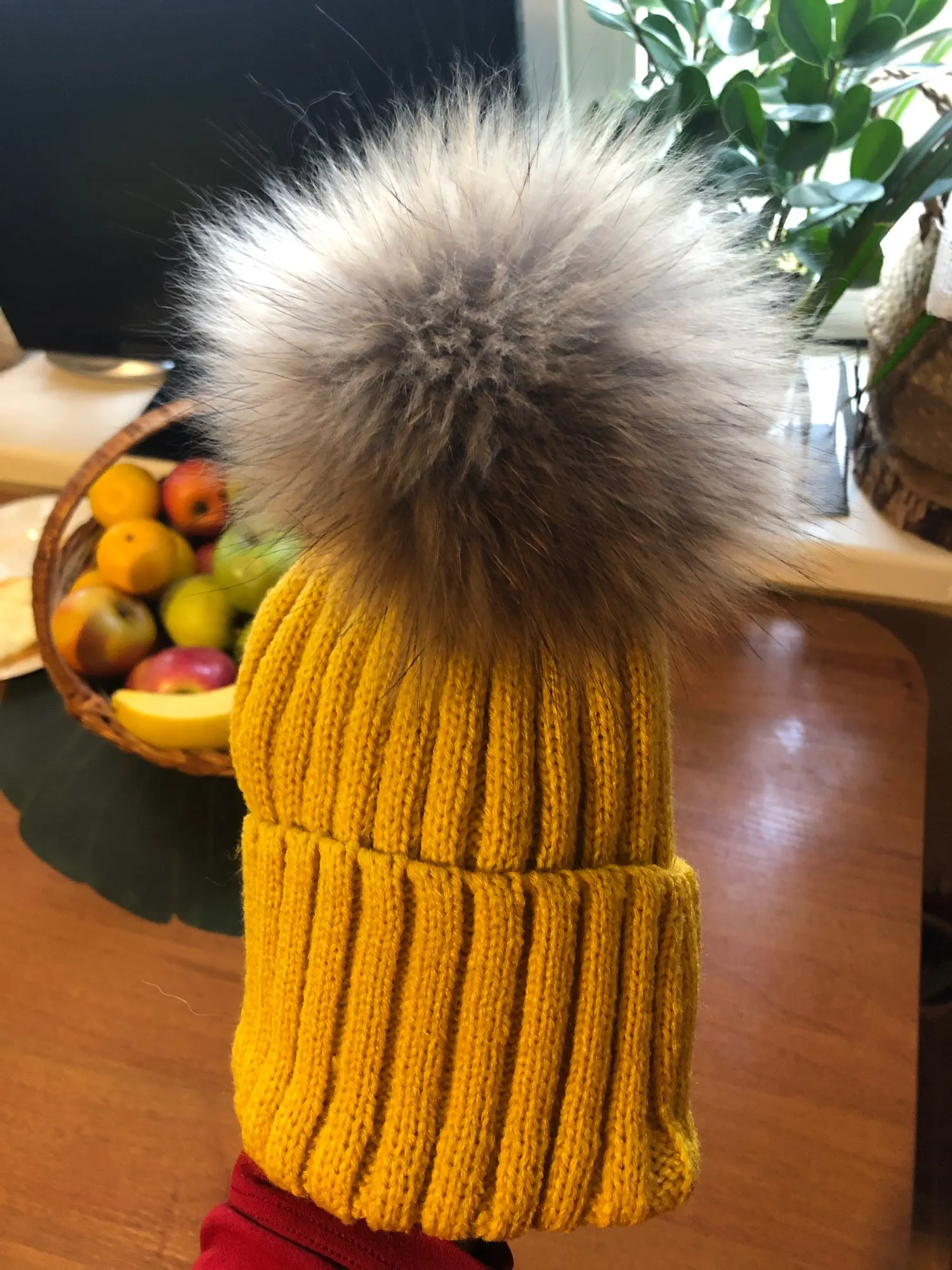 не первая покупка в магазине, шапки хорошие, но не толстые, на холодную зиму не подойдут, хорошо тянутся, не маленькие, взрослый размер на голову 57 см подходит, помпон очень красивый и пушистый, похож на натуральный, цвет самой шапки горчичный, приятный, брала в распродажу, но сейчас цена даже ниже, в подарок положили резинку и визитку