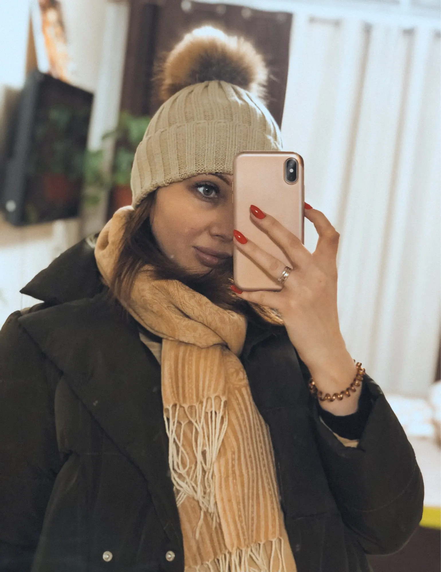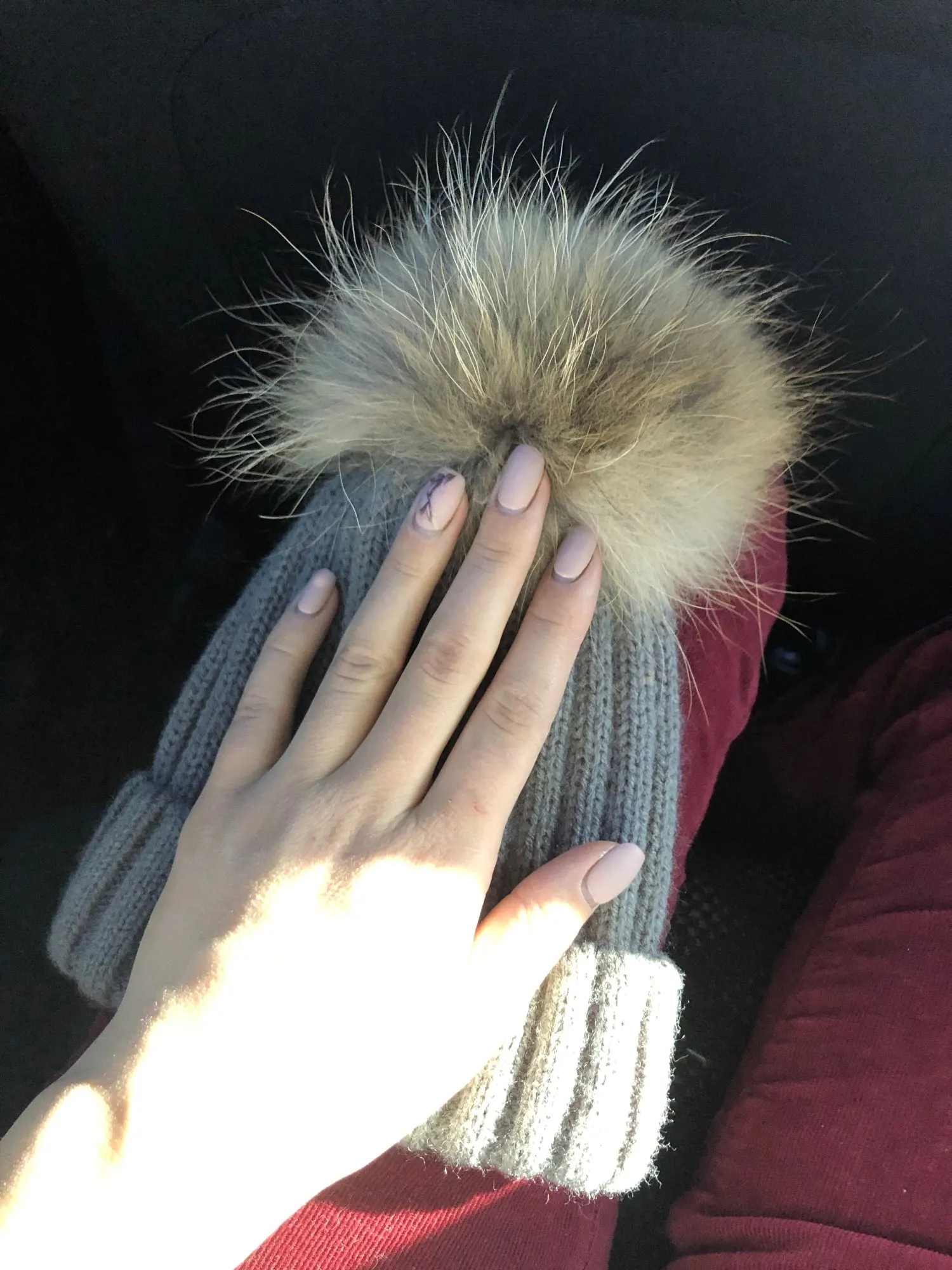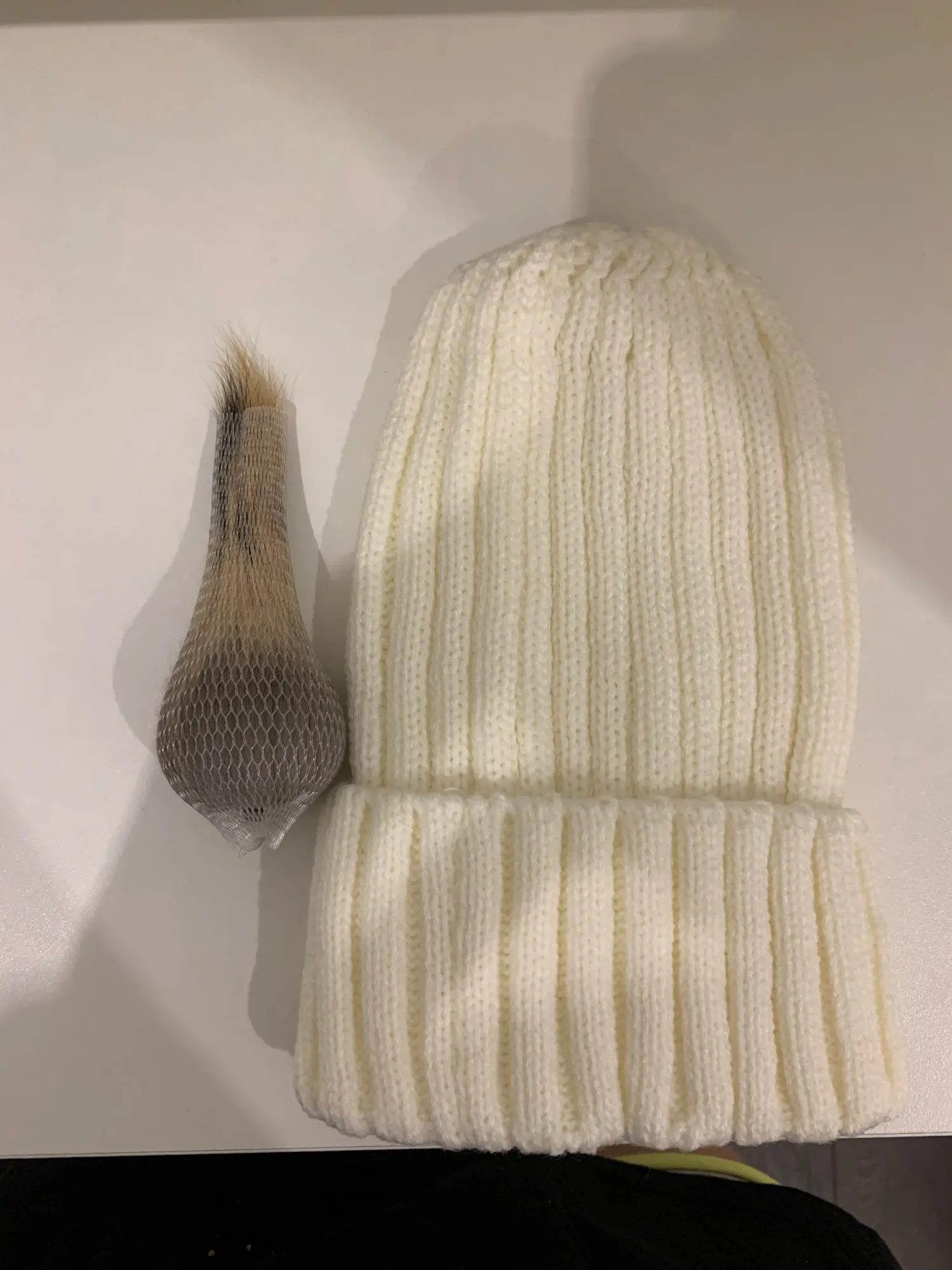 Шапочка тонкая, тоньше, чем мне показалось на фото, но мне всё равно понравилась. Помпон пушистый шикарный, на кнопке- очень удобно . В начала электризовалась на волосах, но к вечеру это прошло, даже не брезгала антистатиком. Цвет не белоснежный. Скорее топленое молоко или как сыр бри внутри, что-то такое. Но очень приятный.