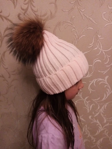 отличная шапка , детский размер отлично подошёл для девочки 10 лет. Хороший пушистый помпон среднего размера. Шапка точно стоит своих денег, особенно по сравнению с ценами в Москве. Отдельное спасибо продавцу за быструю отправку и доставку.