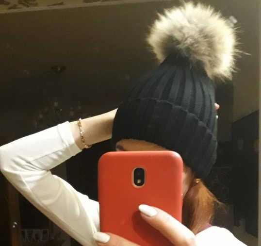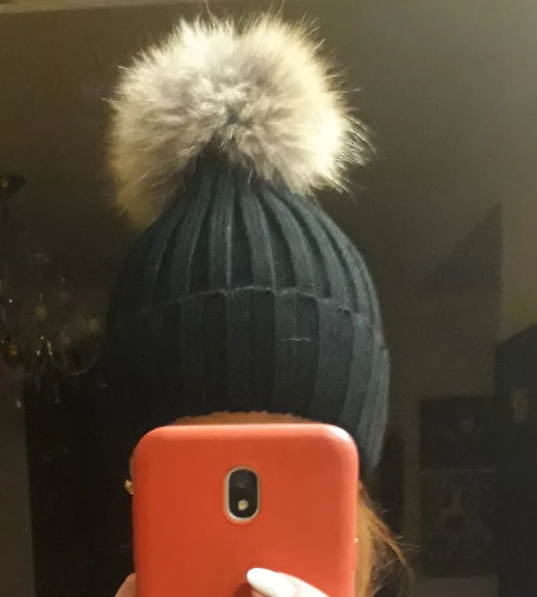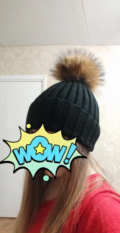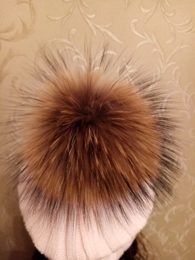 Шапка отличная .сидит хорошо,есть запас.пумпон натуральным выглядит,не облезлый.классная шапка.в подарок резинку положили.