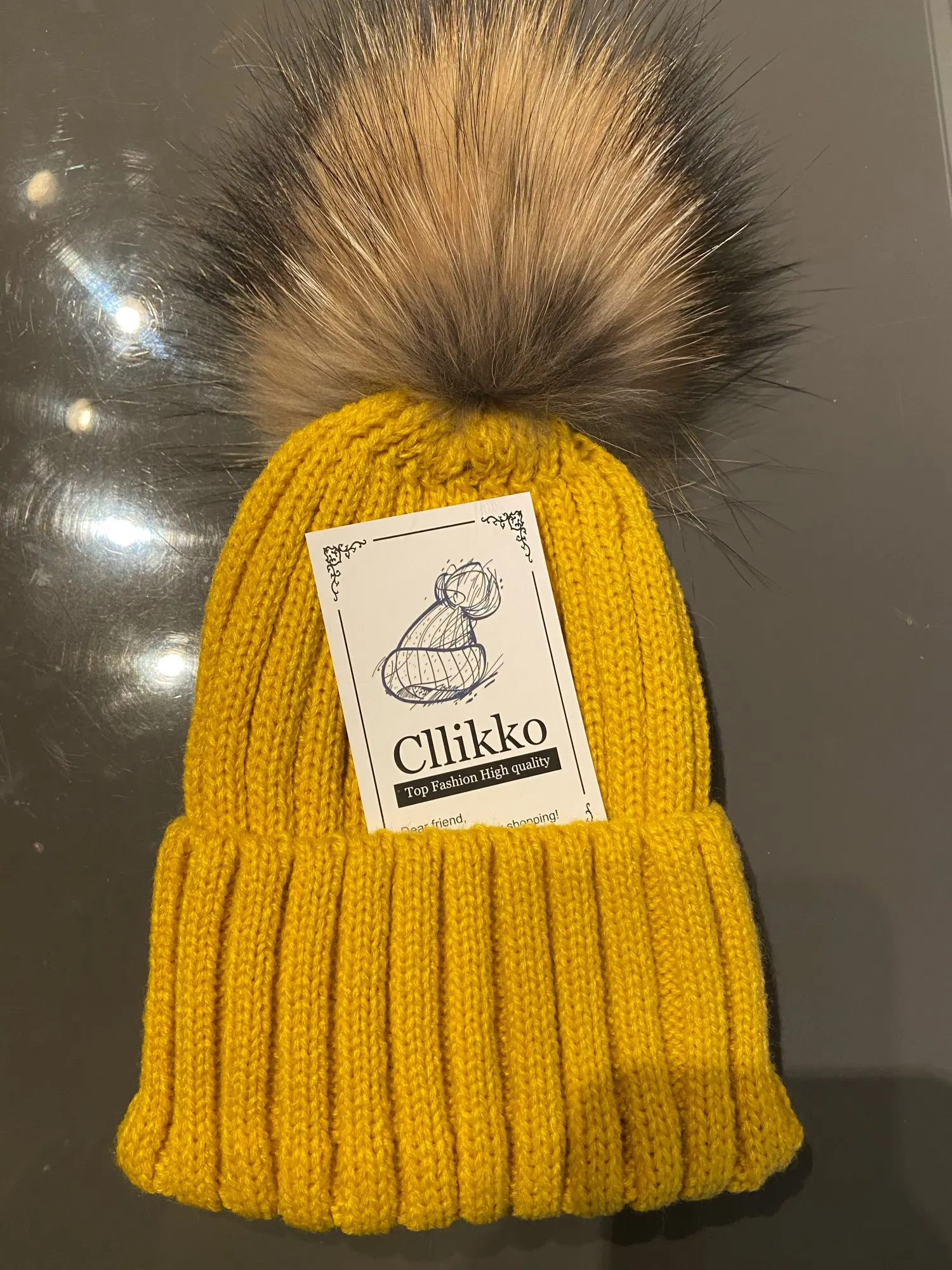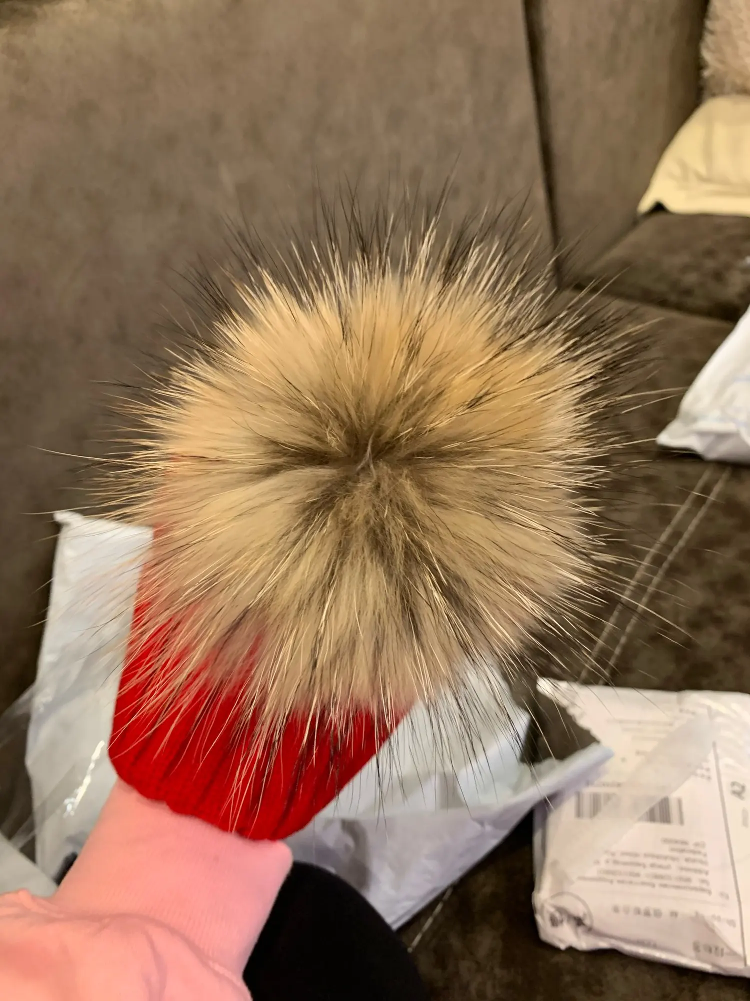 Яркая шапка с натуральной пушниной, большой помпон на кнопке. Доставка быстрая, 3 недели до Москвы шло. Трек отслеживался. Спасибо продавцу за приятный сюрприз))