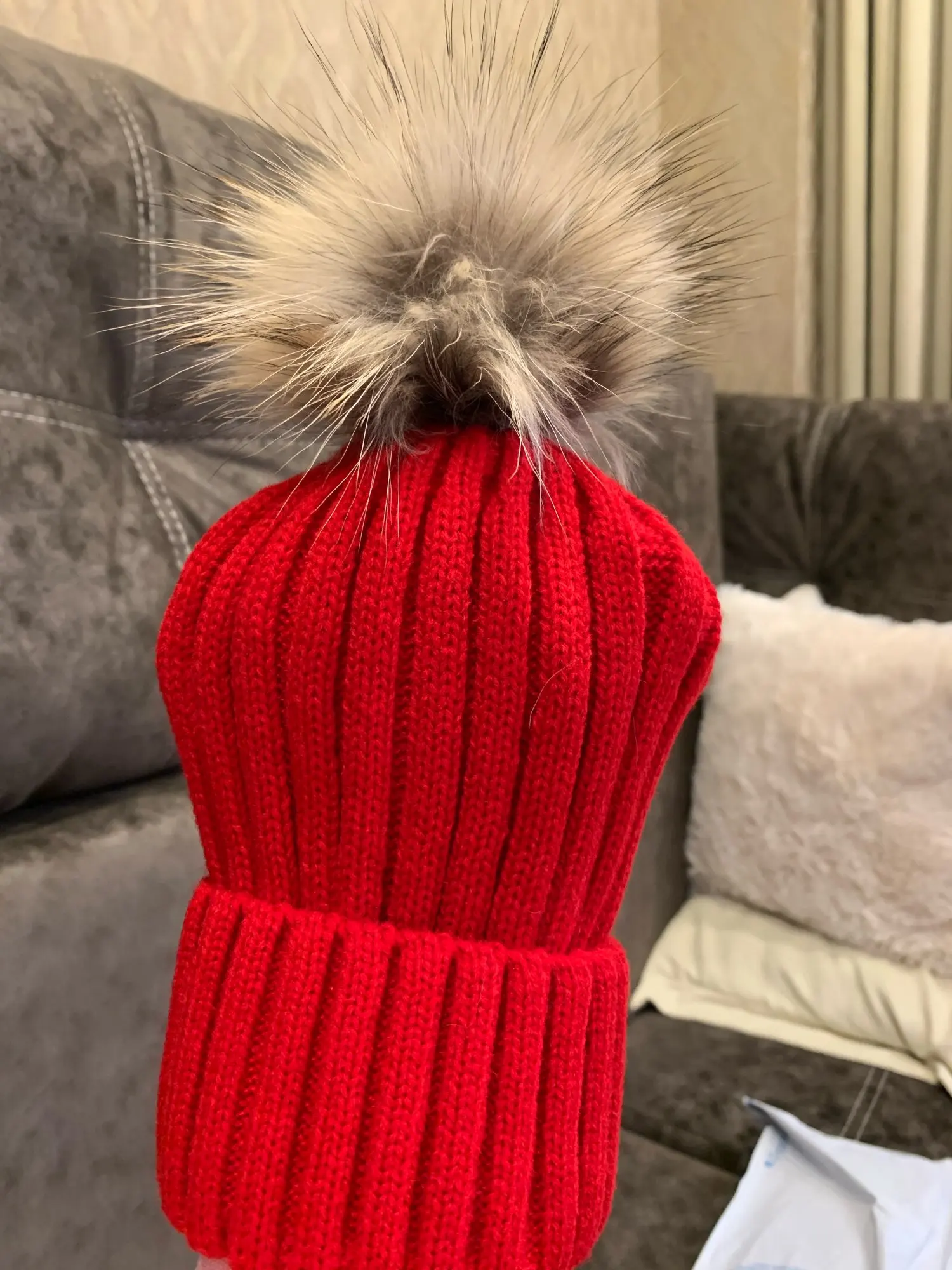 Шапочка - огонь. Мех пушистый, мягенький. Пушистик крепится с помощью кнопки, что позволяет с лёгкостью снять его перед стиркой. Шапка отлично подошла на объем головы 53 см. Сидит комфортно, нигде не жмет. Вязка средней плотности, на погоду до - 10. За свои деньги очень достойный продукт.