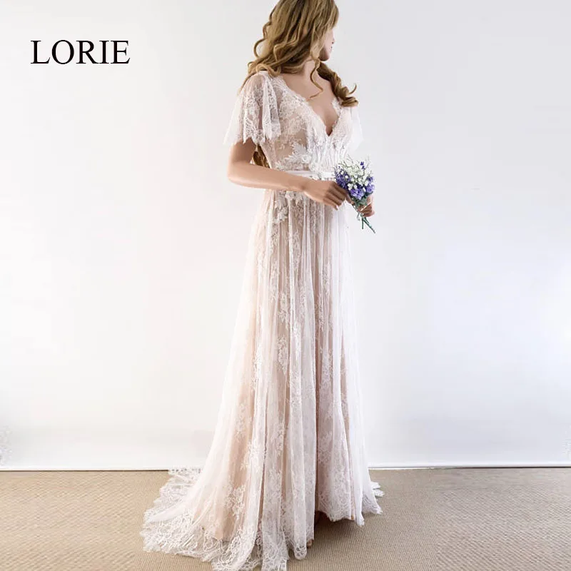Свадебное платье LORIE в стиле бохо, модель 2020 года, с V-образным вырезом и рукавами-крылышками, дешевые элегантные платья-трапеции с открытой спиной для невесты по индивидуальному заказу