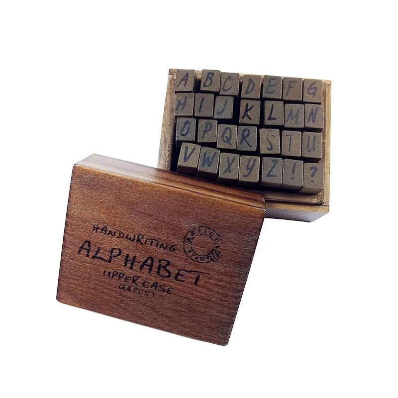 28 штНабор Винтажный многоцелевой почерк Lowercase Uppercase Алфавит Письмо украшение деревянный набор резиновых штампов