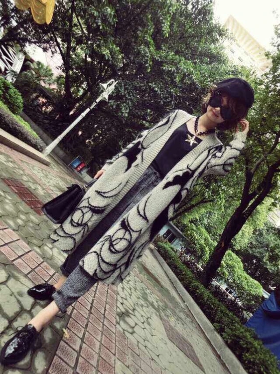 Женский модный кардиган с принтом граффити, мохеровый трикотаж, вязаный длинный свитер, Корейская осенняя одежда, джемпер, осенние пальто