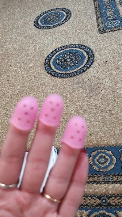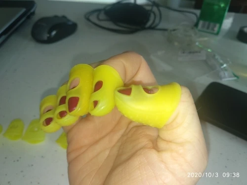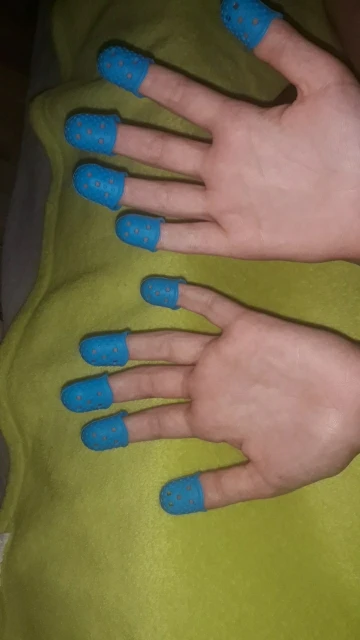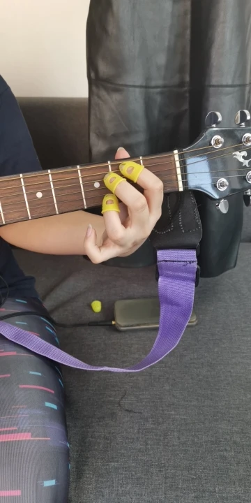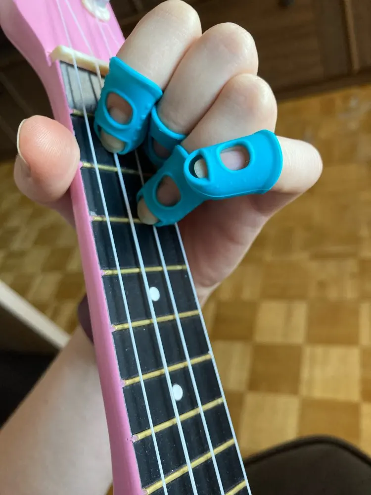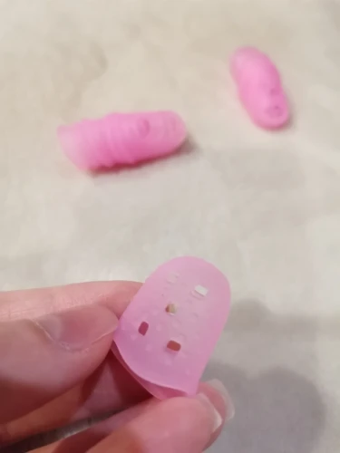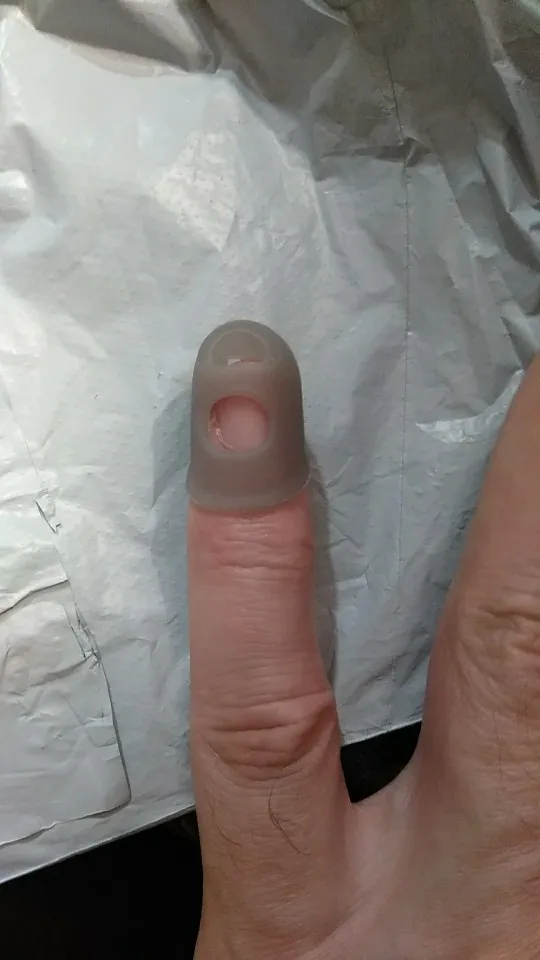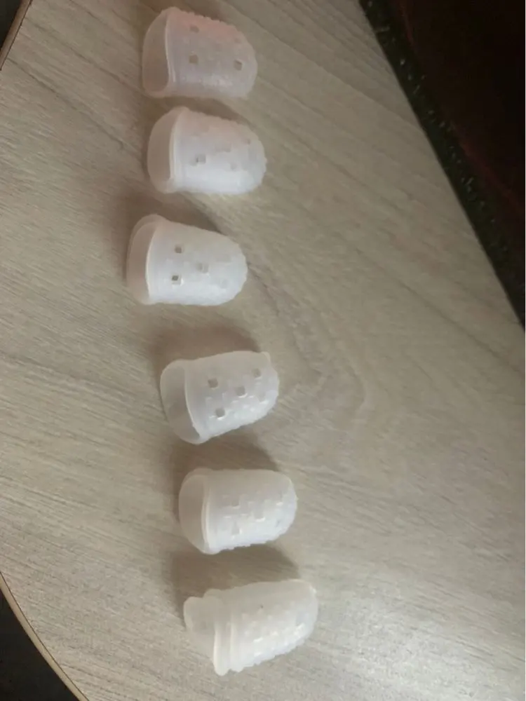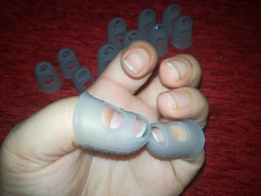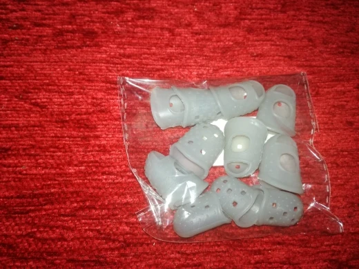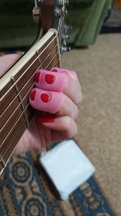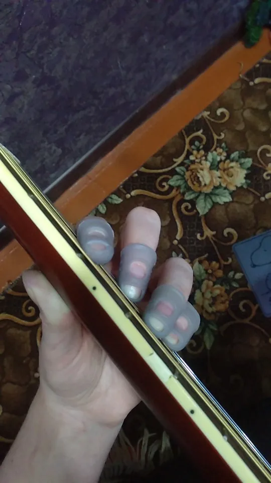 отличное приспособление! На самом деле мне нужен был только на указательный палец, так как струна попадает под ноготь как ни срезай. Если одеть на все пальцы сразу струны не чувствуются. Одеваю только на указательный. Мне очень помогло, спасибо