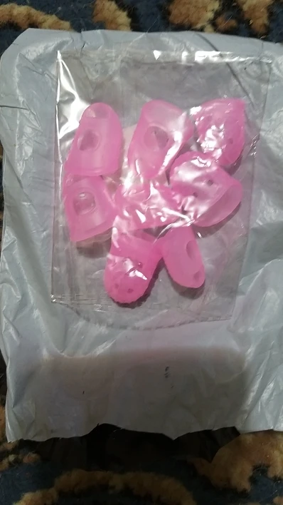 Очень долгая доставка - более 2,5 месяцев. Заказывал, когда купил гитару. И тоге сейчас спустя 2,5 "тренировок" игры на гитаре - понимаю, что эти штуки даже и новичку НЕ нужны. ДА, БЕЗ них пальцы по началу сильно болят, но со временем на подушечках образуются мозоли и зажимать аккорды становится НЕ больно;) При этом если изначально пользоваться такими силиконовыми штуками, то мозоли и НЕ появятся, так же как НЕ появится и умение играть на гитаре. В связи с тем, что в этих резиновых колпачках правильно зажимать аккорды очень сложно - НЕ чувствуешь струны пальцами. Бесполезная вещь как по мне. Хотя сейчас имея хоть какой то опыт игры на гитаре все же стоит отметить, что попробовав поиграть в этих колпачках - могу сказать, что с задачей своей они справляются на 100% - зажимать металлические струны в них очень приятно - вообще никаких болевых ощущений... но я наверное все же пользоваться НЕ буду... лучше и удобнее "прокачивать" мозоли на пальцах...