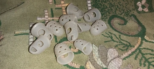 Спасибо! Мне нравятся. И цена порадовала и Размеры маленькие, как раз для моих пальчиков. Брала до этого похожие в спец.магазине были все одного размера (по моим меркам на большой палец, приходилось подматывать изоленту))) и цена была по 40р за штуку.) Доставка достаточно быстрая, около трёх недель до МО.