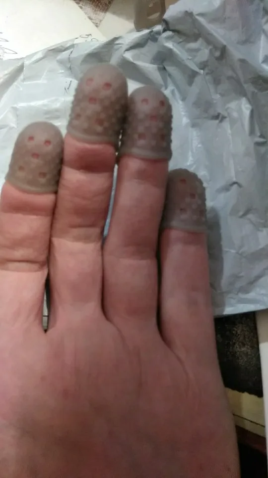 Очень удобные напалечники! Не знаю, как для игры на гитаре, а для работы с бумагами - супер!!! )))