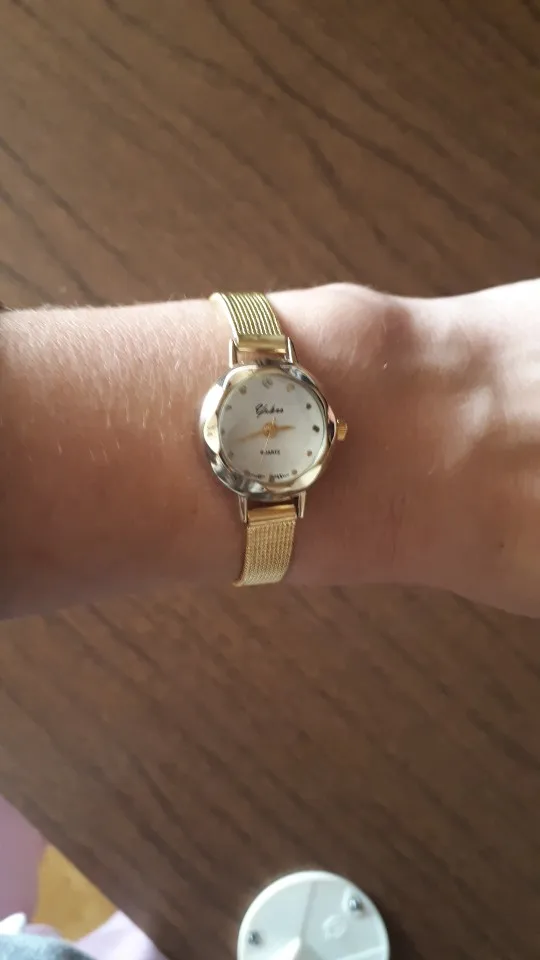 Часики миниатюрные, для маленькой худенькой ручки. Очень красиво смотрятся, точно так как и на фото, все работает. Шли долго. Еще не ношу ,но попробую, вроде прочные. Продавцу огромное спасибо!!!!!
