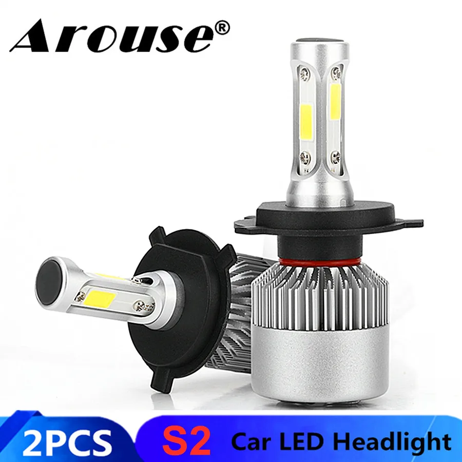2 шт.лот 6000K H4 автомобильные S2 лампы для фар Светодиодные COB ч...