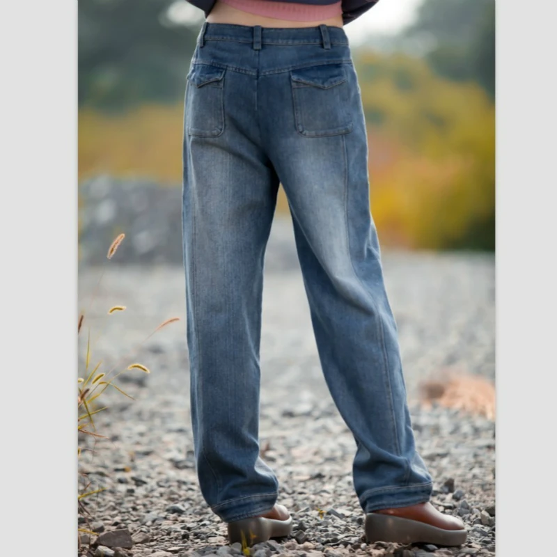 Женские джинсы со средней посадкой, свободные синие джинсы, с широкими штанинами, джинсы для женщин в стиле бойфренд, размера плюс