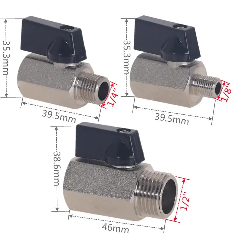 Миниатюрный латунный шаровой кран 12, 14 дюйма, 18 дюйма, BSP, штекер-гнездо, Air клапаны компрессора, 1 шт.