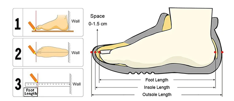 1.Пожалуйста, выберите размер обуви в соответствии с вашимДлина стопы(От пятки до носка).