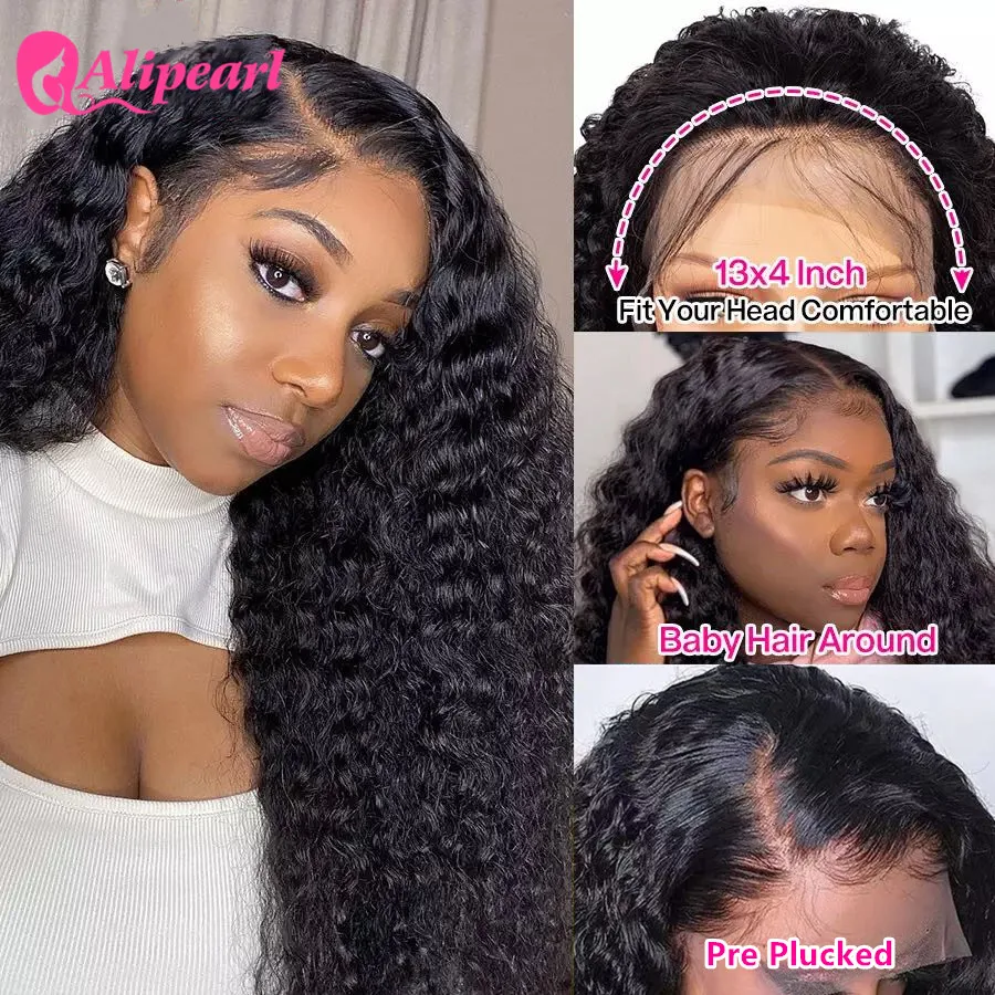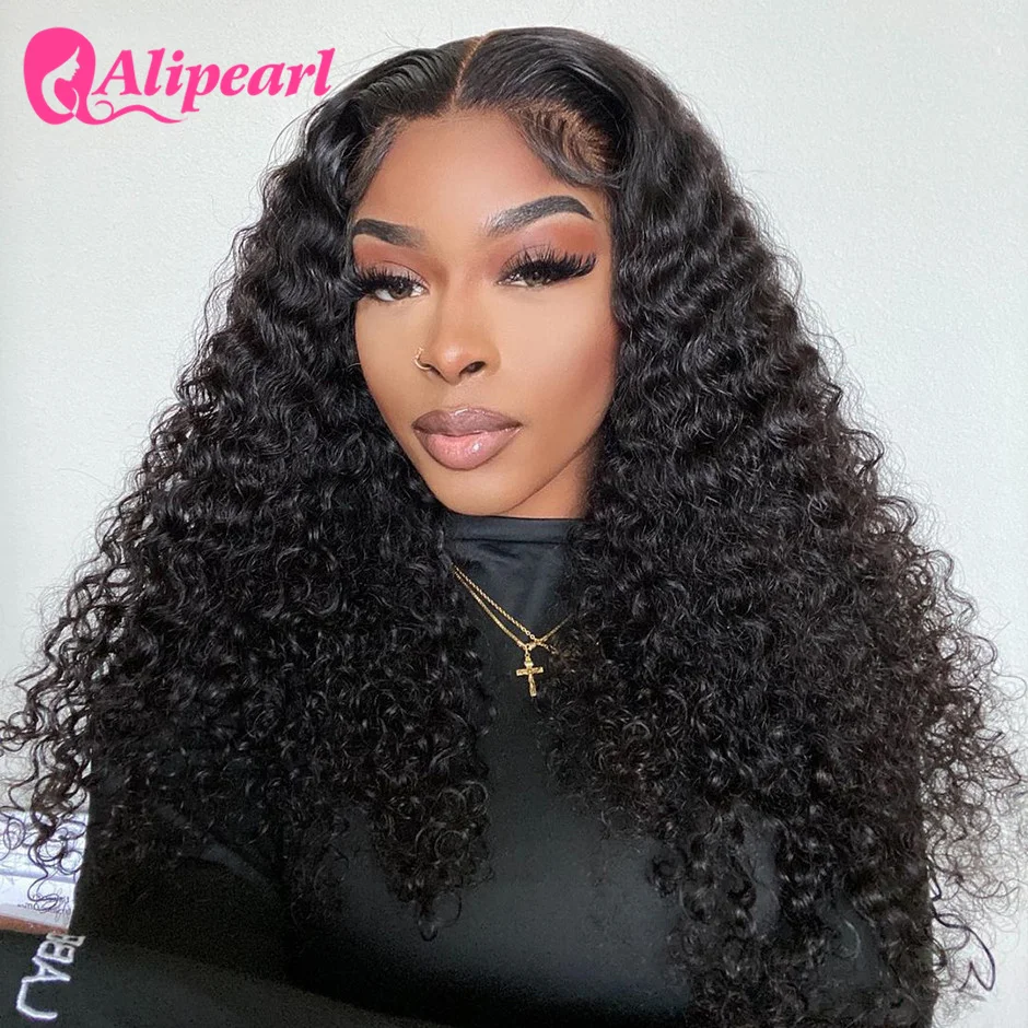 AliPearl парик для волос с глубоким волнистым кружевом спереди, парик из человеческих волос, 180 плотность, бразильский, 4x4, парик на шнуровке для черных женщин, парик с жемчугом Ali