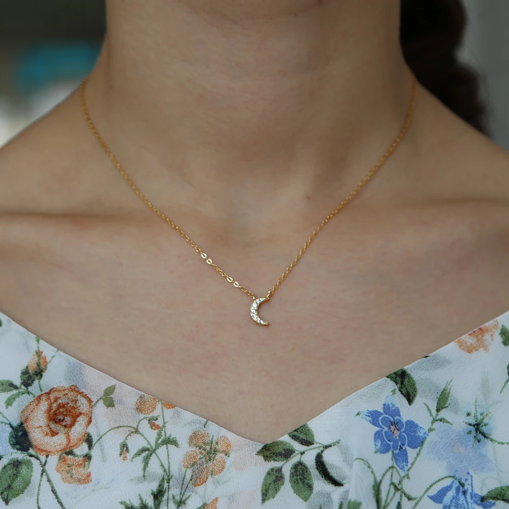 2018 минимальное крошечное ожерелье из стерлингового серебра 925 пробы с фианитами луной, высокое качество, ювелирные изделия, рождественский подарок для женщин, Милая луна