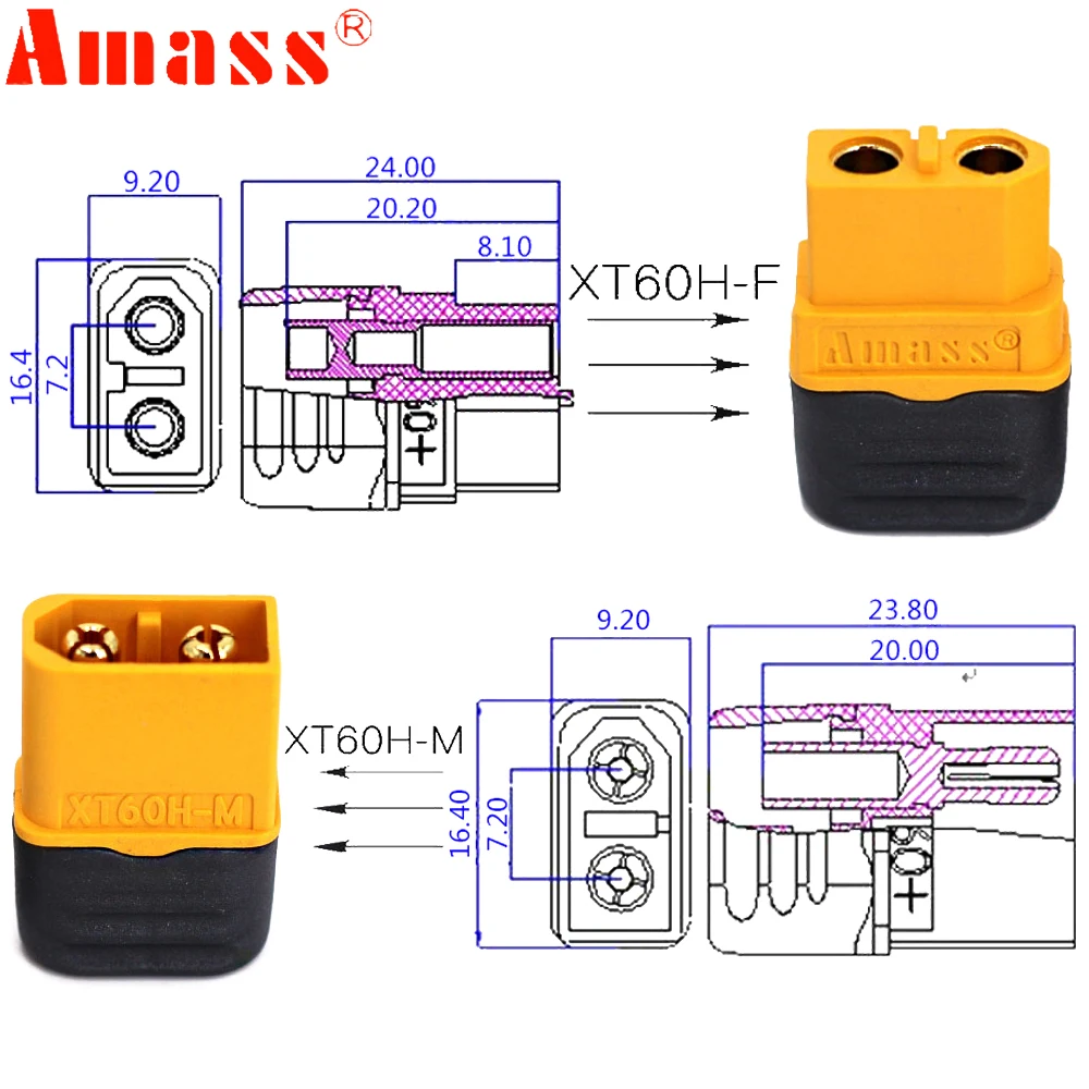 50 паралот AMASS XT60 + XT60H штекерные разъемы 60A-100A 0.8m с оболочкой, Штекерный разъем для модели RC Lipo Battery Motor ESC