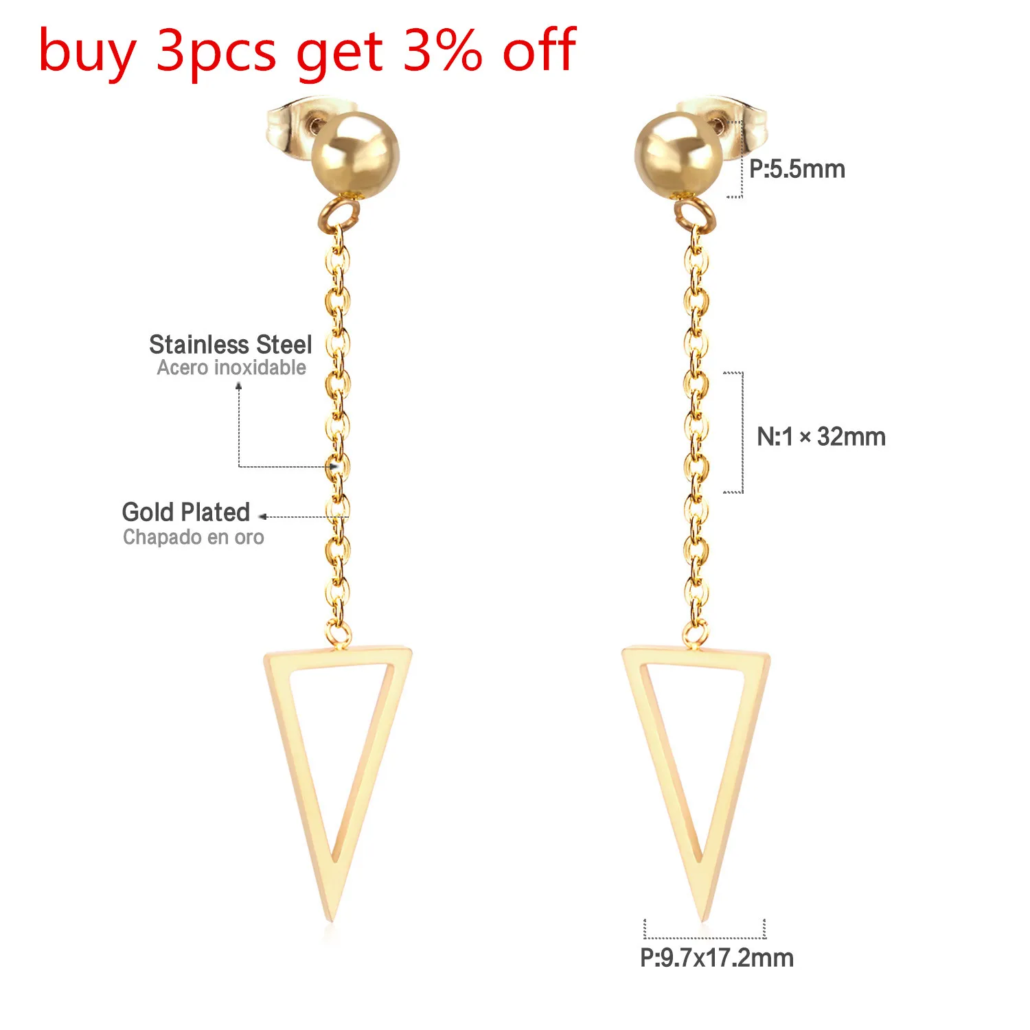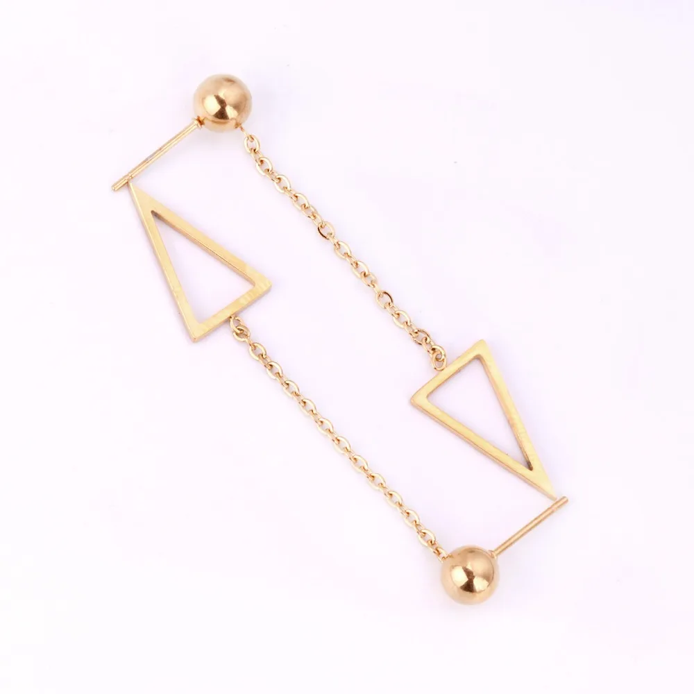 Роскошные геометрические треугольные серьги-Кисточки Из Нержавеющей Стали, золотого цвета, серьги с эффектом пуш-ап, модные ювелирные украшения, подарок