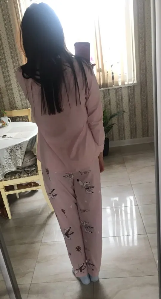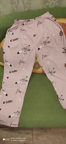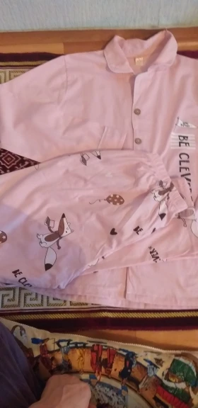 Одну звезду сниму за лис вверх ногами на одной штанине, судя по отзывам это случай не единичный. В целом пижама отличная, приятная, лучше брать на размер больше. В подарок серёжки пришли. Благодарю