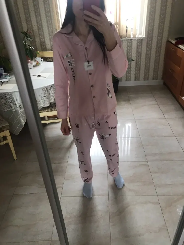 Пижамный комплект Женский, с длинным рукавом, весна-осень