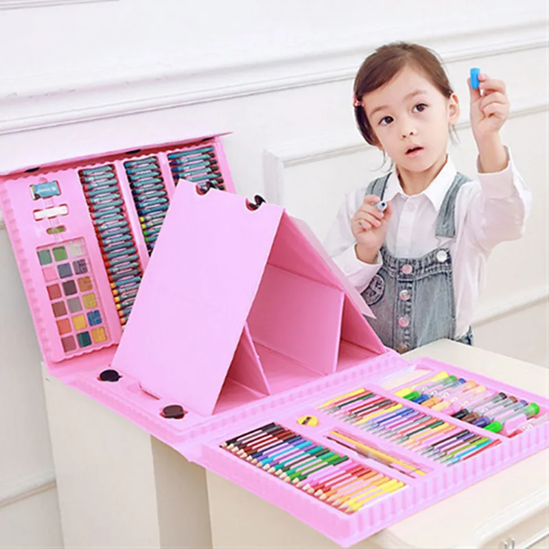 Детская 208 шт.компл. сине-розовая игрушка для рисования набор инструментов для рисования алюминиевой коробке ручка для рисования акварелью