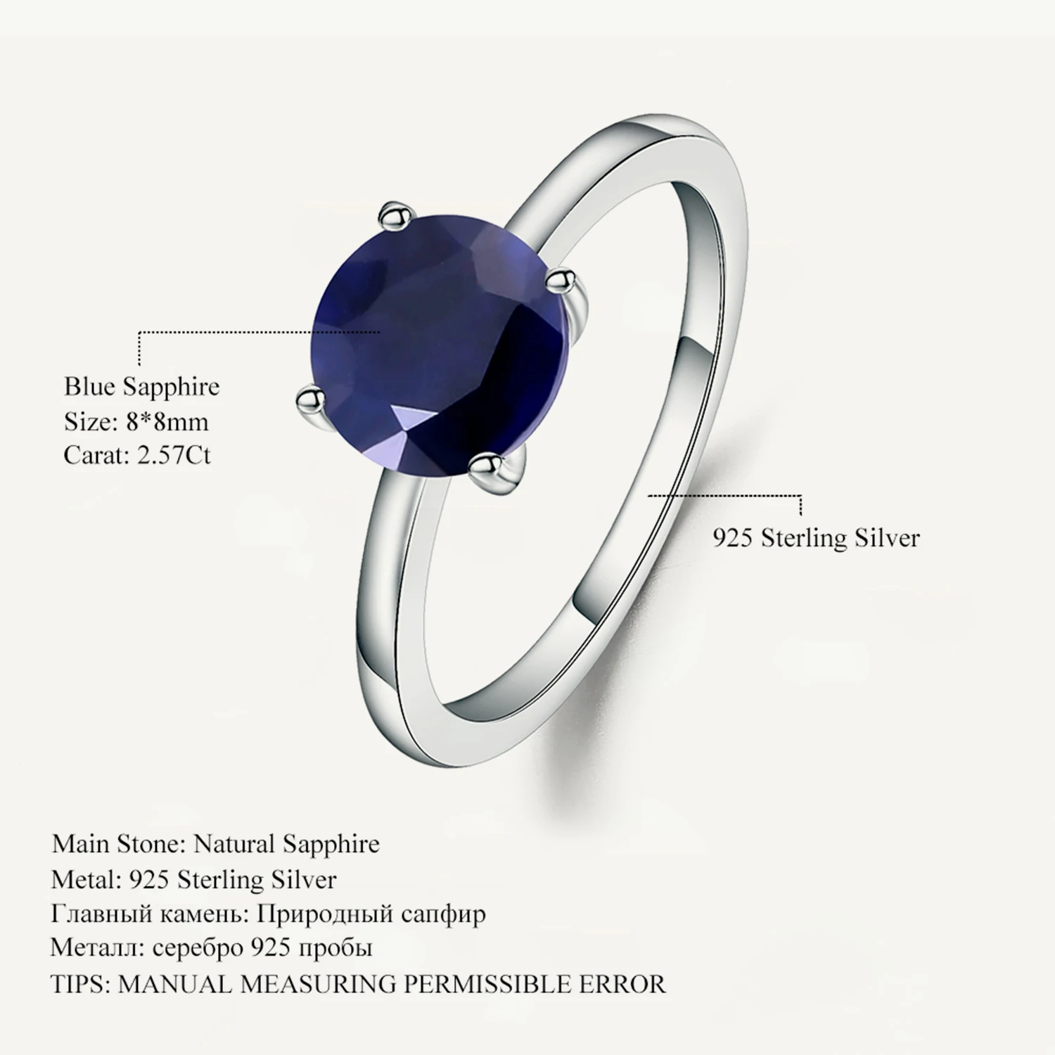 Кольцо женское из серебра 925 пробы, с натуральным голубым сапфиром 2,57 карата