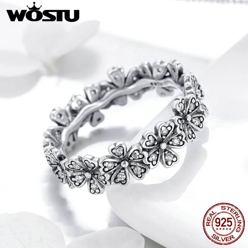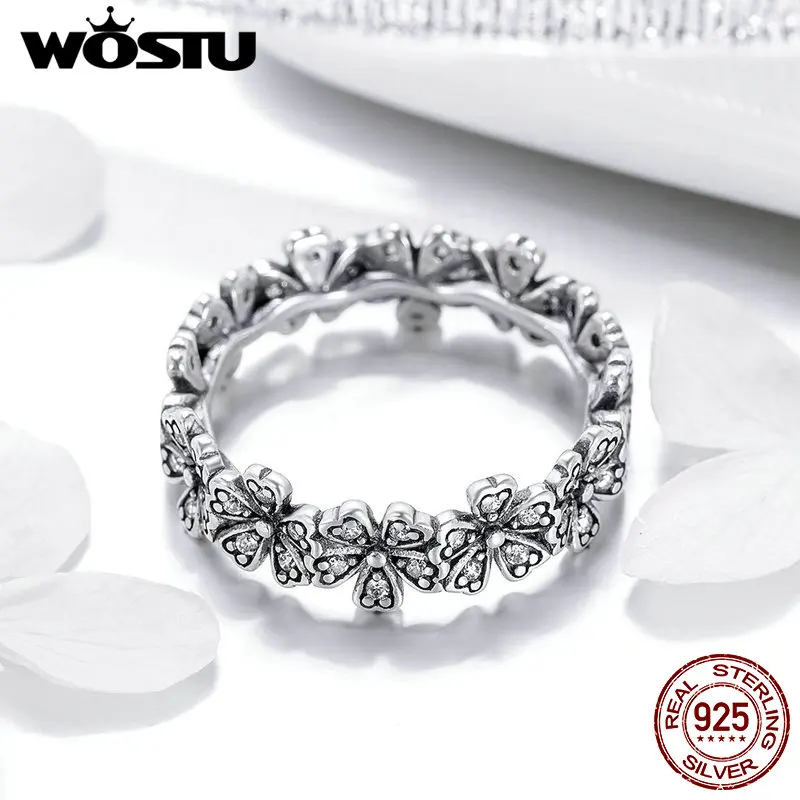 Женское кольцо с ромашками WOSTU, сверкающее штабелируемое кольцо из серебра 925 пробы с цветами, для свадьбы, Прямая поставка, модные украшения CQR397